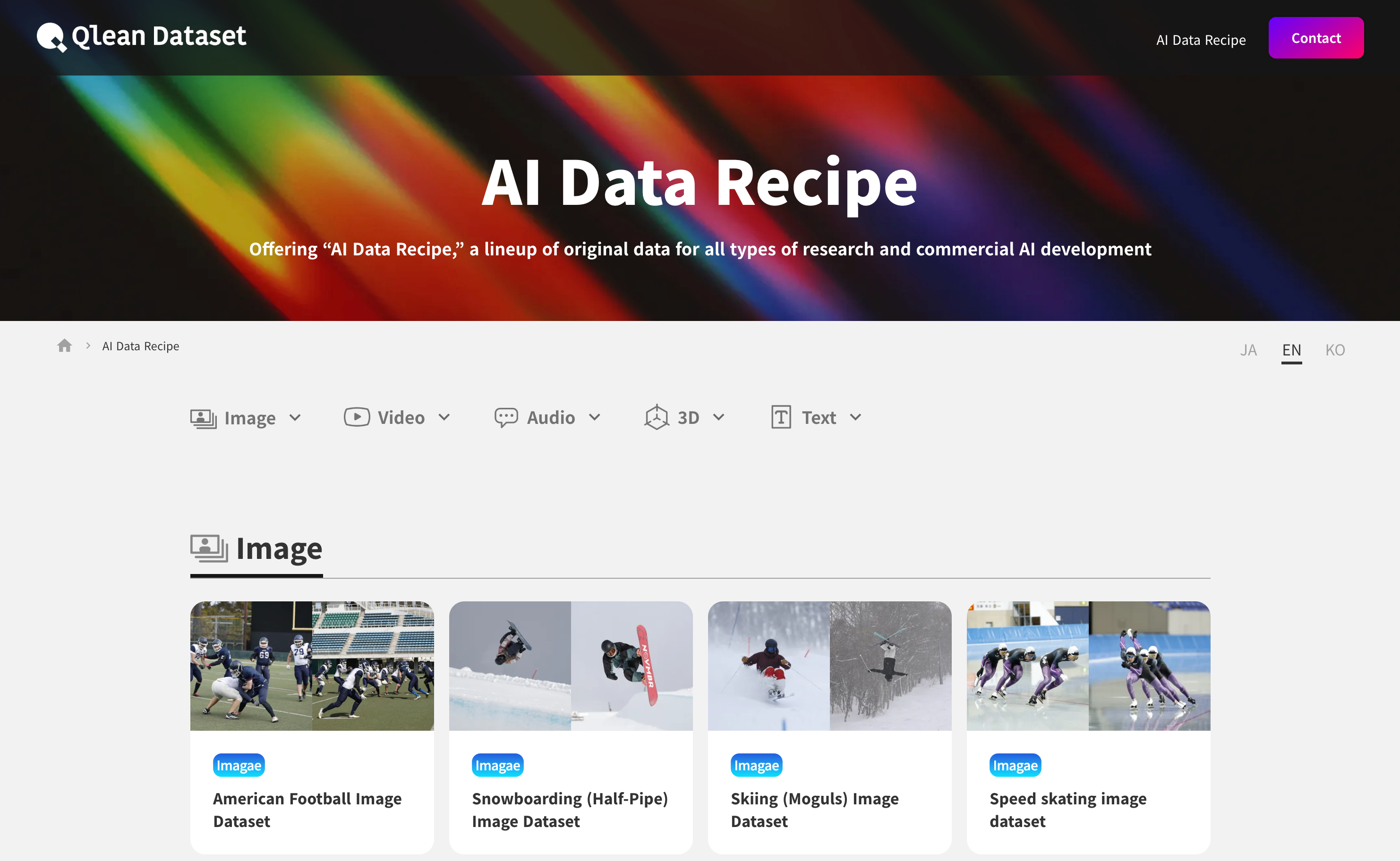 Qlean Datasetでは独自に構築したAI開発用データのラインナップ『AIデータレシピ*』の拡充を進めています。