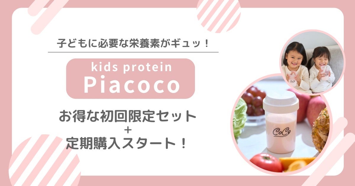 この度、キッズプロテイン「Pia coco」のお得な初回限定セット+定期購入がスタート!詳細を説明いたします。