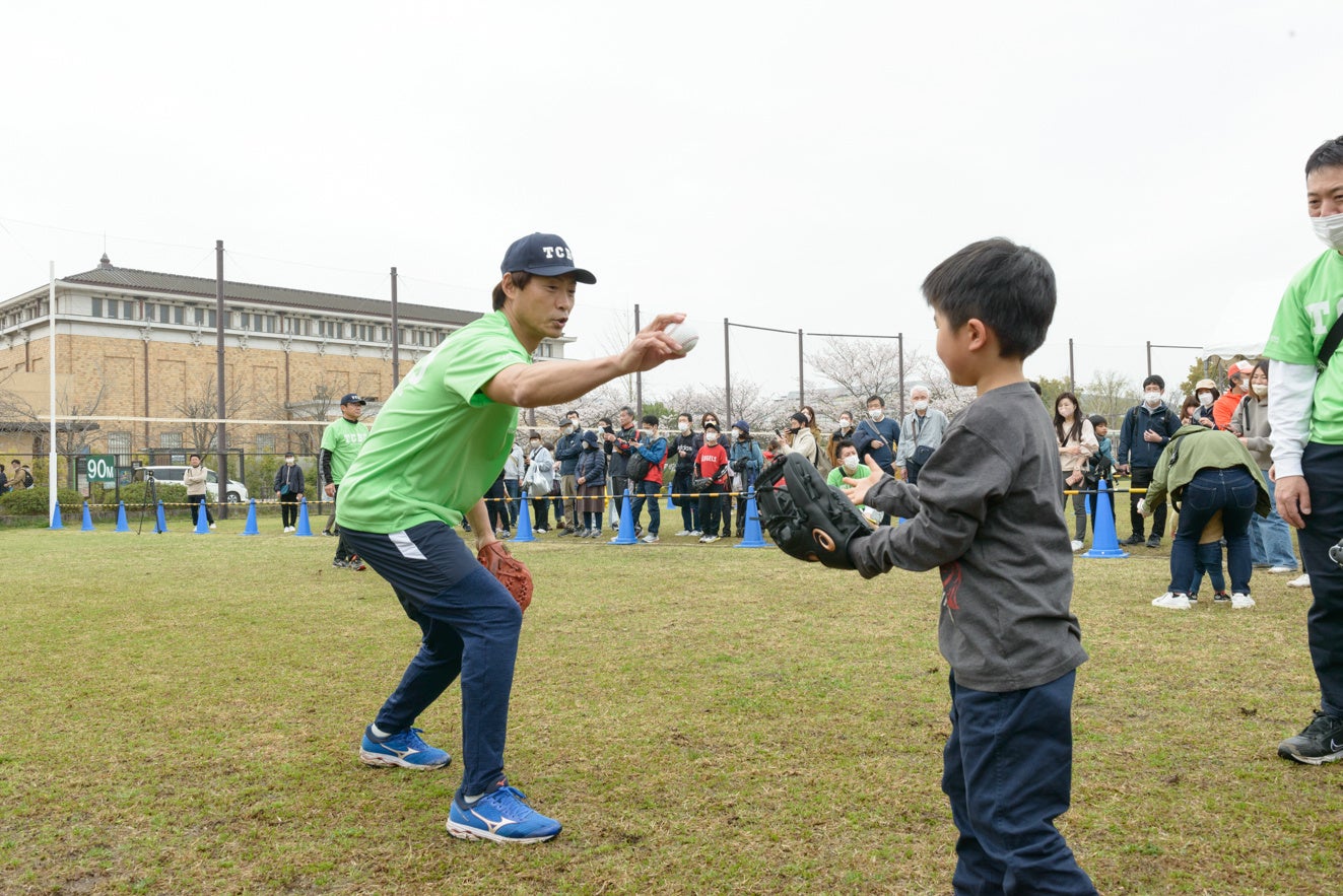 大人から子どもまでが自由にキャッチボールを楽しめる家族参加型イベント「TCBC2024 東京キャッチボールクラブin京都」が3月30日(土)に、京都市左京区岡崎の岡崎公園・野球場で開催されます。今年も元プロ野球選手の古田敦也さんと桧山進次郎さん、タレントの稲村亜美さんをゲストにお迎えします。京都新聞グループの京都新聞折込サービスセンター(京都市中京区)は、各種企業のチラシを京都新聞オリジナル手提げ袋に入れ、入場者に手渡し配布いたします。