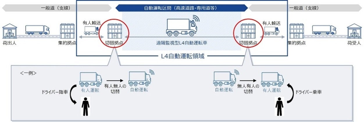 自動運転トラックの無人/有人運転を切り替えるためのドライバーのトラックへの乗り降りおよび当該のオペレーションを検証するための対応など |