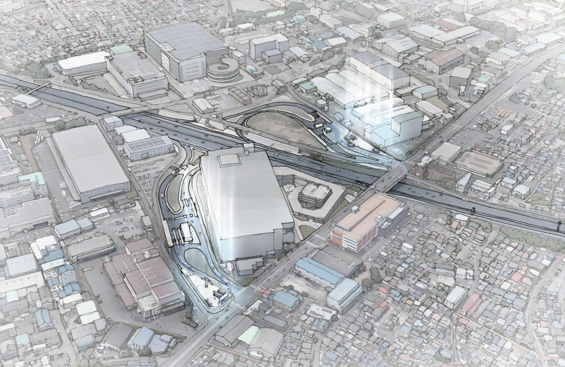 その中で着目した綾瀬市小園の土地は、綾瀬スマートICに近接し、高速道路へのアクセスが非常に良いことから、土地所有者をはじめとする関係者との協議を経た上で切替拠点の設置を実現する運びとなりました。本拠点は東名高速道路を挟んだ2か所で構成し、ICへの乗り降りにそれぞれ対応します。