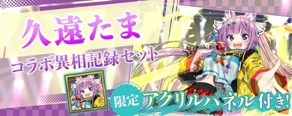 2024年6月6日(木)メンテナンス後より、キャラクター「佐藤ゆず」の声優を担当した久遠たまさんが描かれた異相記録「異相:久遠たま」を含む「コラボ異相記録セット[久遠たま]」(全2種)を、期間限定で販売します。