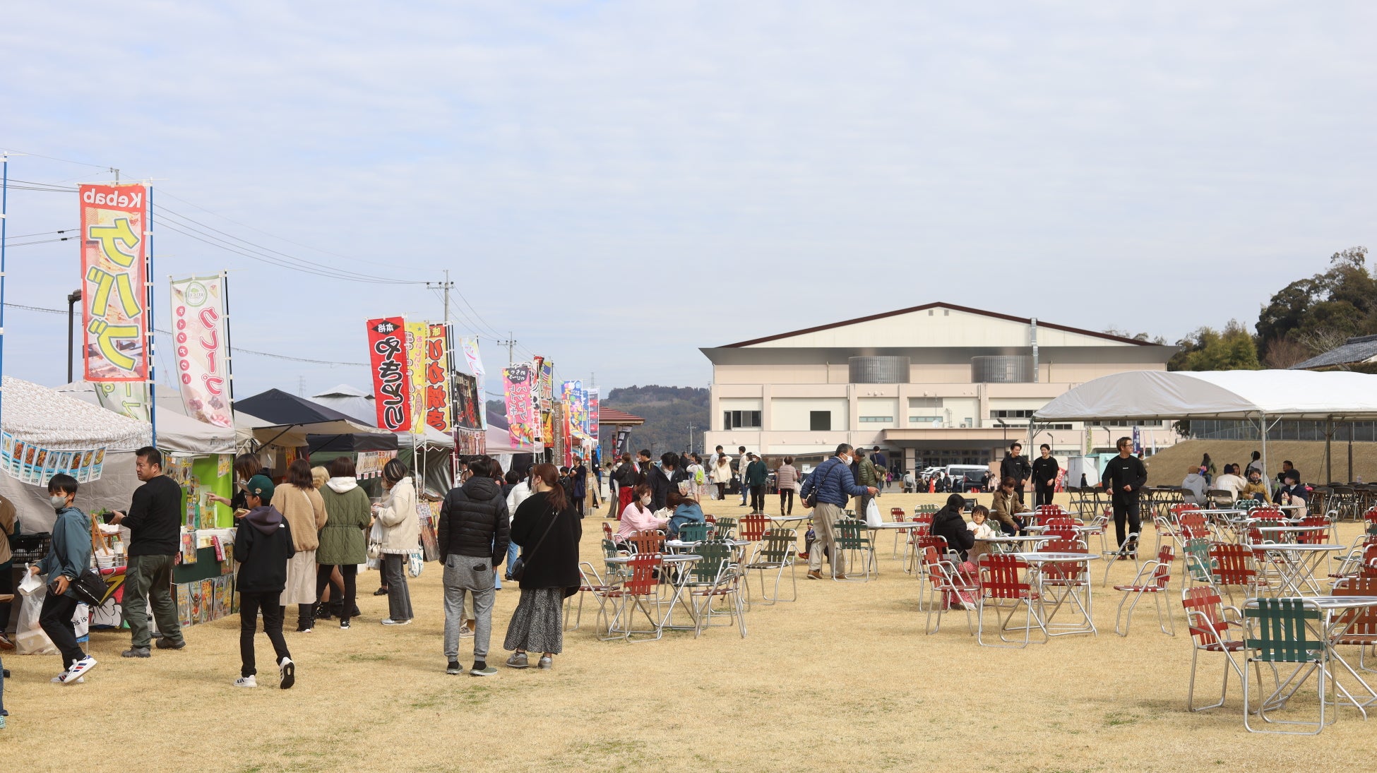 国富町商工会青年部主催の第2回「KUNITOMIグルメ市」が、令和7年2月15日(土)にアリーナくにとみにて開催されました。今年も、地元のグルメを楽しめる屋外ブースと、ハンドメイド雑貨やワークショップを楽しめる屋内ブースに分かれての実施となり、1,000人を超える来場者で賑わいました。