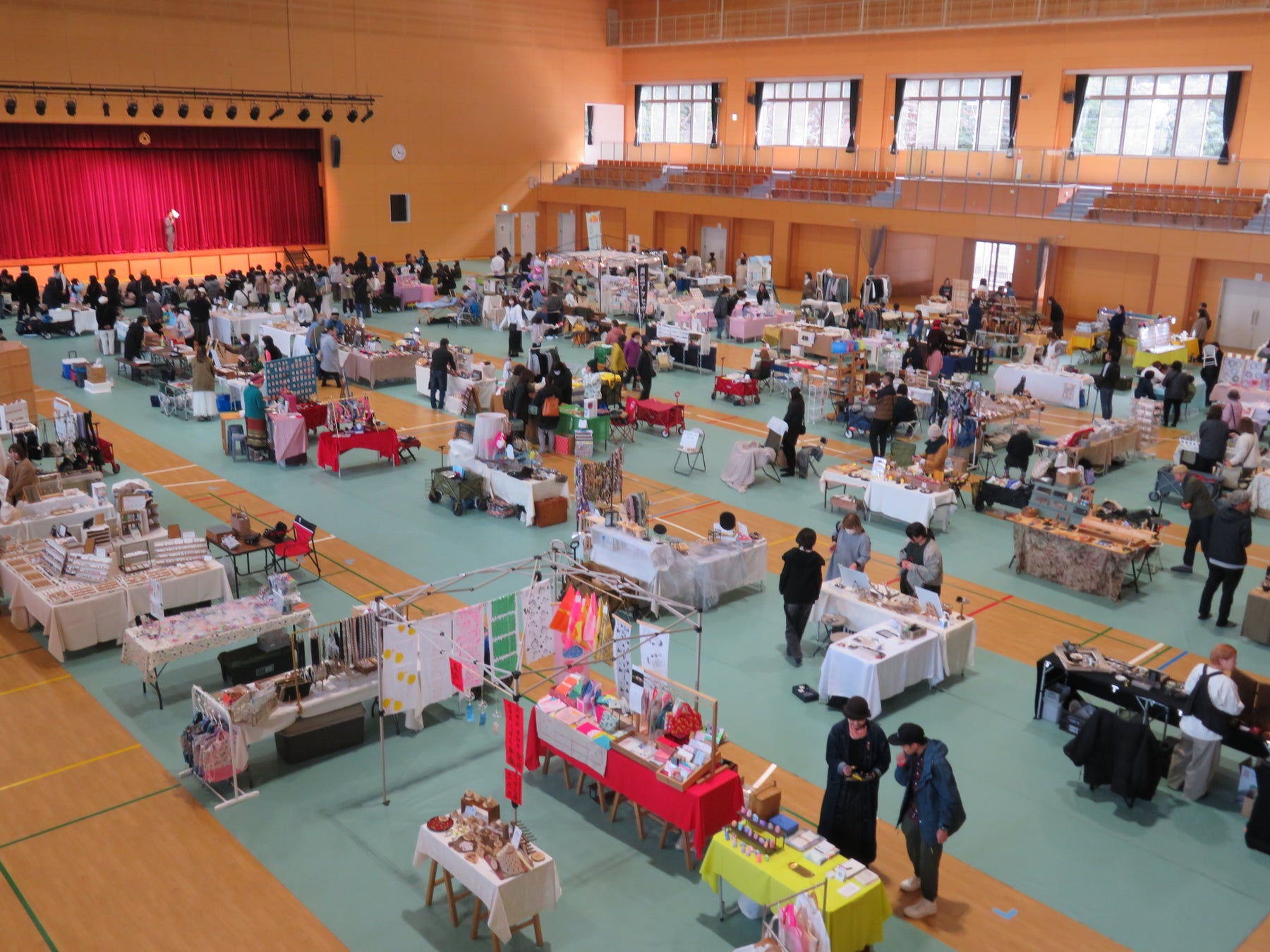 屋内ブースのアリーナくにとみ館内では、アクセサリーやキャンドルなどの雑貨や観葉植物の販売、ハンドメイド体験のできるワークショップやマッサージなど、様々な出店があったほか、赤ちゃんハイハイ競争やミニ四駆大会も開催され、多くの来場者を楽しませました。