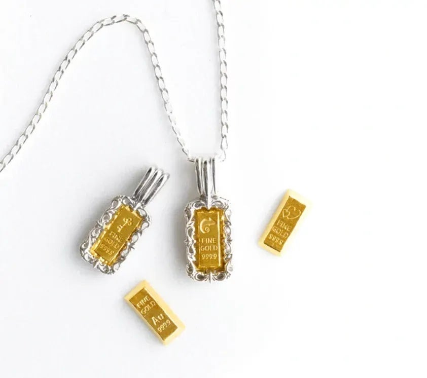約1gの金と言えばあのカタチ「インゴット(金塊)」型のミニチュアサイズとなっております。