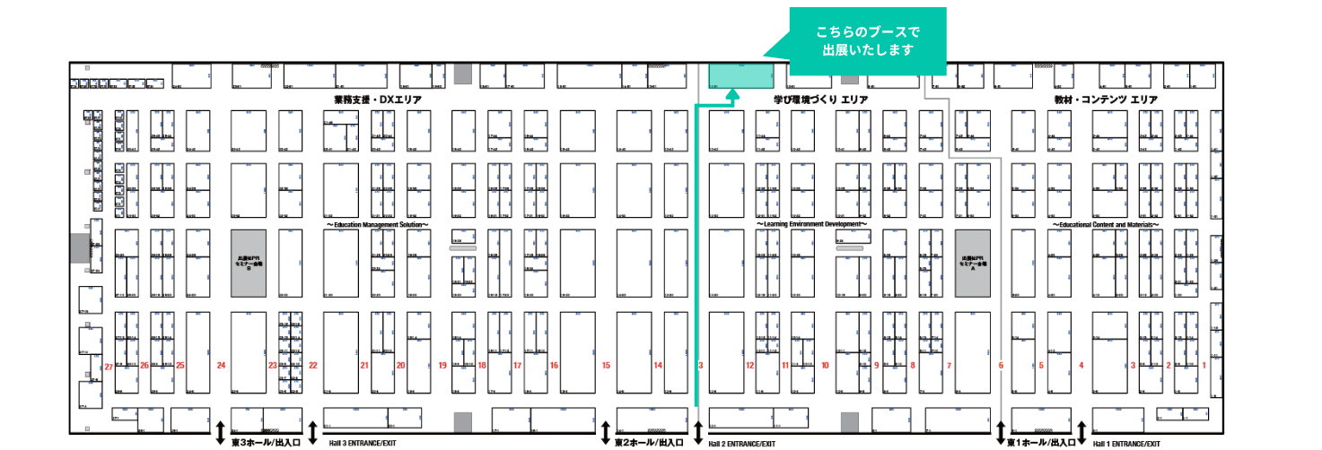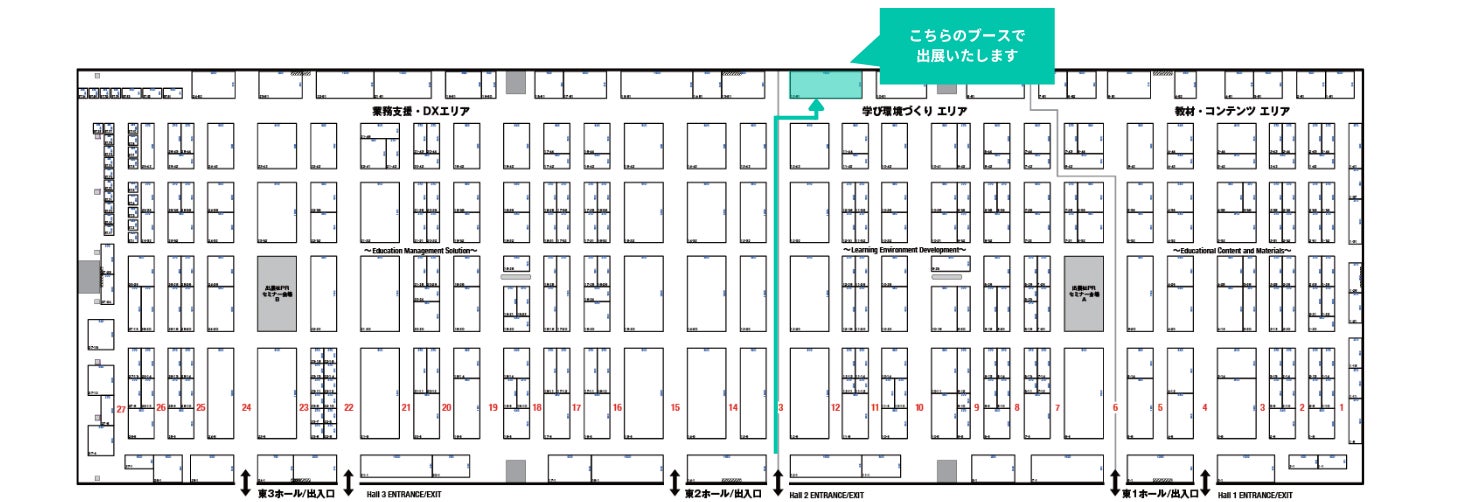 ミライタッチブースは【東展示棟・学び環境づくりエリア】にて展示を予定しています。