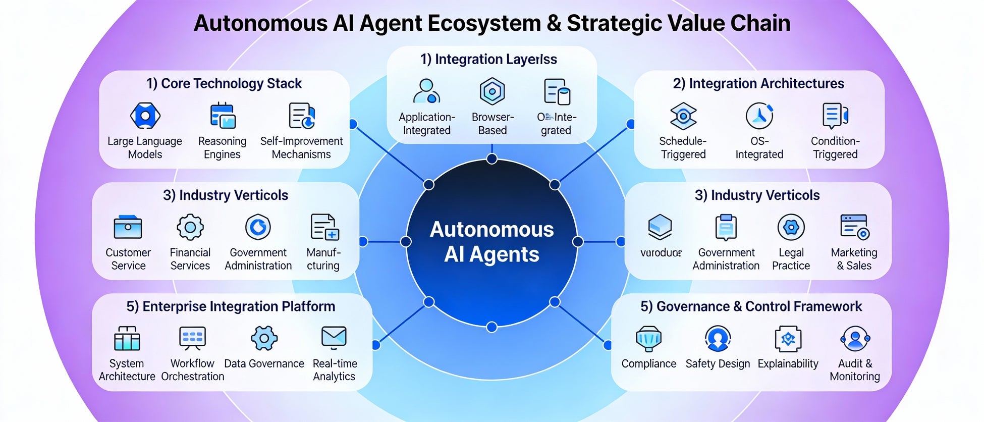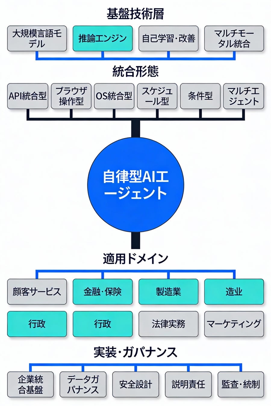 従来の単一エージェント中心から、マルチエージェントシステム、API統合型、ブラウザ操作型、OS統合型、スケジュール型、条件型といった複数の統合メカニズムが並行展開され、組織のニーズに応じた選択と組み合わせが可能になっている。