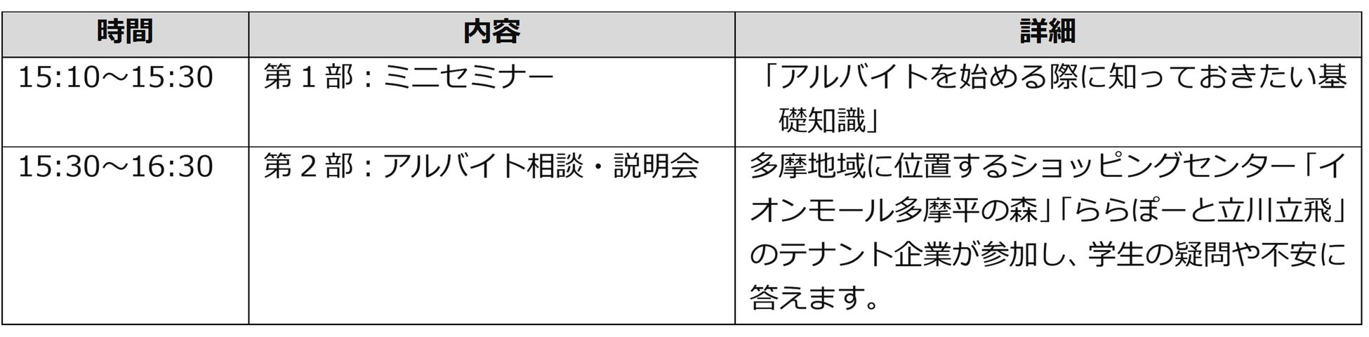 ・初めてアルバイトを探す新入生に対し、トラブルを回避するための基本知識を学ぶ機会を提供