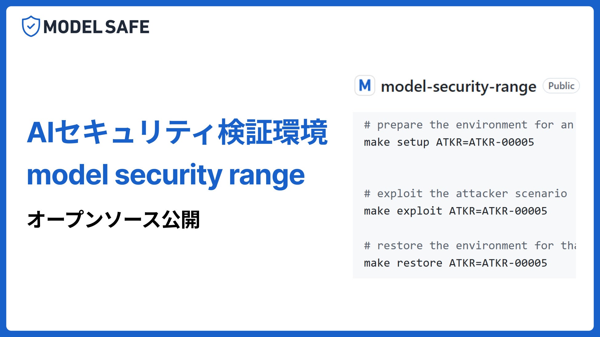 株式会社MONO BRAIN(本社:東京都渋谷区、代表取締役:加藤 真規)は、実践的なAIセキュリティ検証環境「Model Security Range」をオープンソースとして公開したことをお知らせします。
