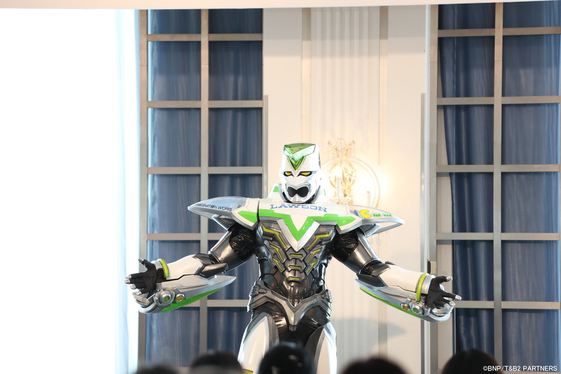 イベント中盤ではさらに「タイバニ」シリーズのイベントや舞台でスーツアクションを務めるジャパンアクションエンタープライズ所属アクターの富永研司さんと高橋 光さんが登壇。ヒーローの”姿”になってキャラクターを演じる二人ならではの思い出エピソードを紹介した。ワイルドタイガーのヒーロースーツアクションを担当している富永さんからは、初めてワイルドタイガーとしてお客さんから割れんばかりの歓声を浴びた時の感動や、今まで3代のヒーロースーツを身に纏ってきた中で、昔と比べて快適性が向上したことなど、ヒーローを演じ続けてきたからこそ実感する経験が語られ、スカイハイのヒーロースーツアクションを担当している高橋さんからは、「今でもこんなに盛り上がっている状況がすごい!」と作品が長年愛されていることに感謝を述べつつ、演技の際は「オーバーな方が(受け手が)分かり易い」「着用した際の身幅を意識して動く感覚が重要」と、キャスト陣が気になっているアクションへの質問に対して、ヒーローとして振る舞うことへのこだわりを語った。