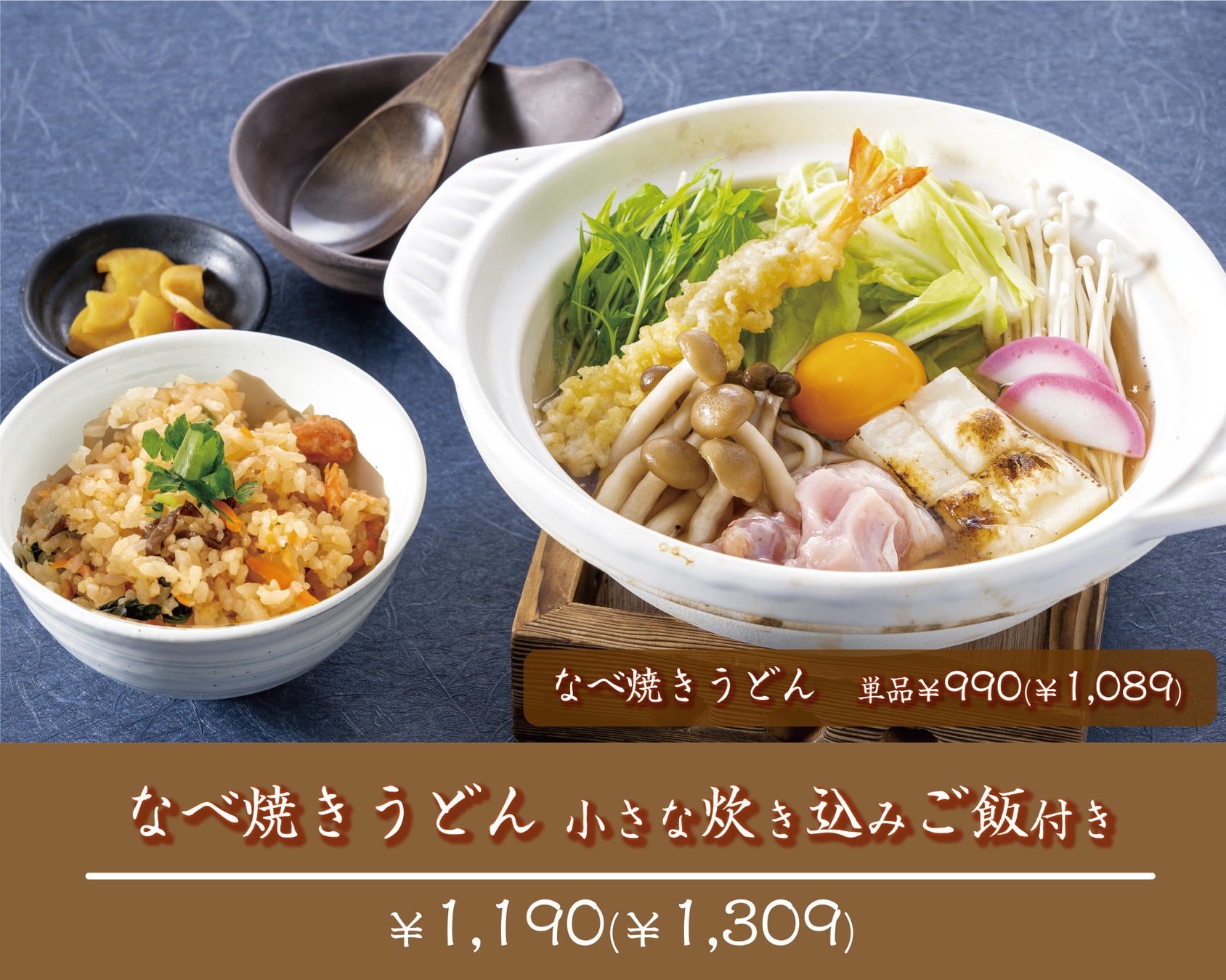●なべ焼きうどんと小さな炊き込みご飯 1,190円(税込み1,309円)