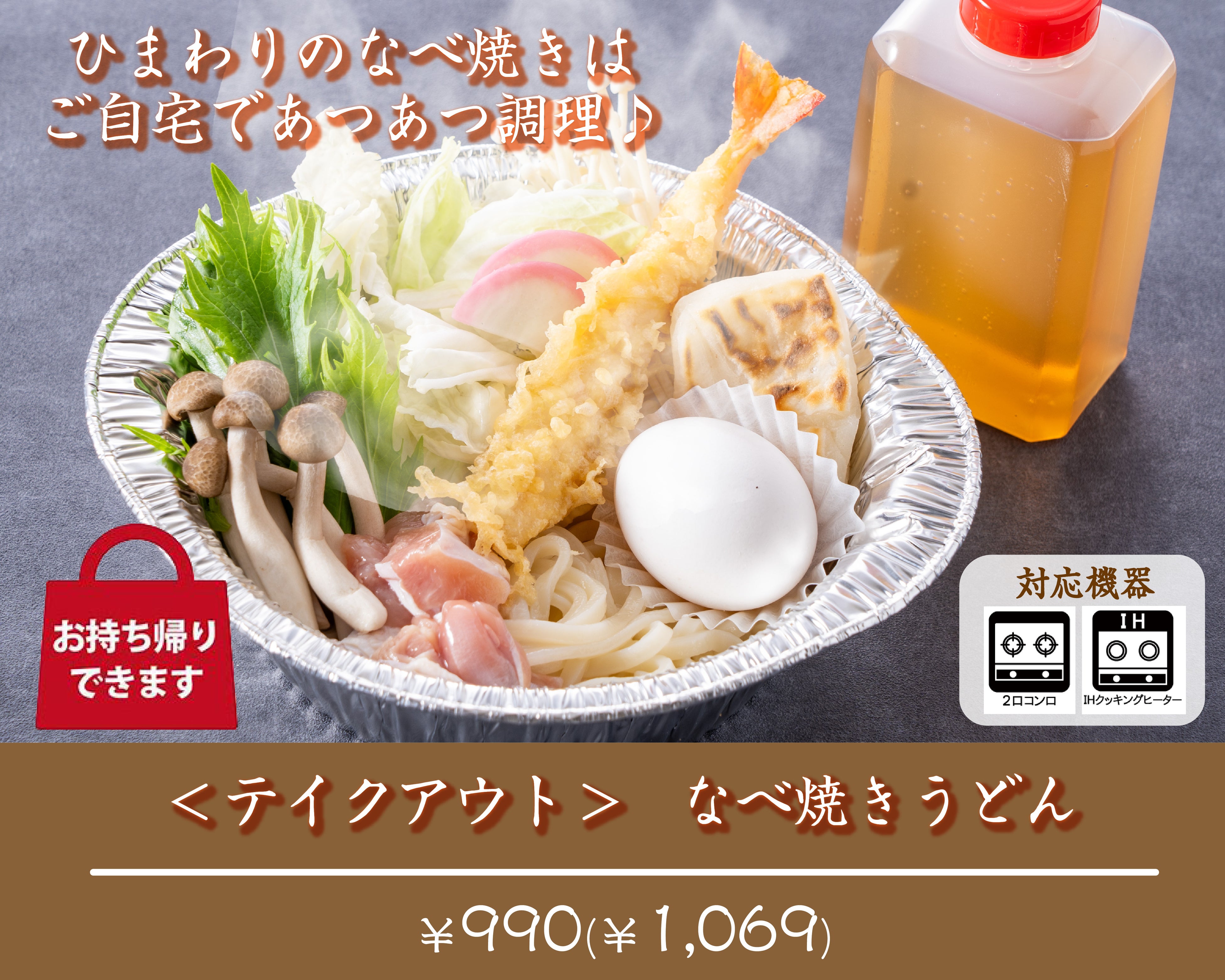 鍋焼きうどんはテイクアウトでもお楽しみいただけます!