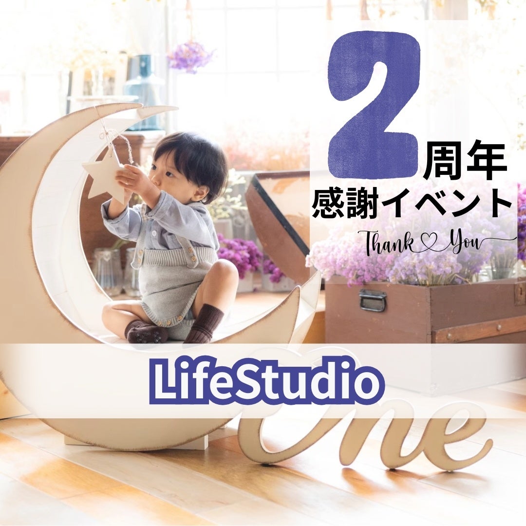 そんな2年間の感謝を込めて、ライフスタジオ京都桂店では現在「2周年記念感謝イベント」を開催中です。期間中に撮影をご予約いただいたお客様には、以下の特典をご用意しています。