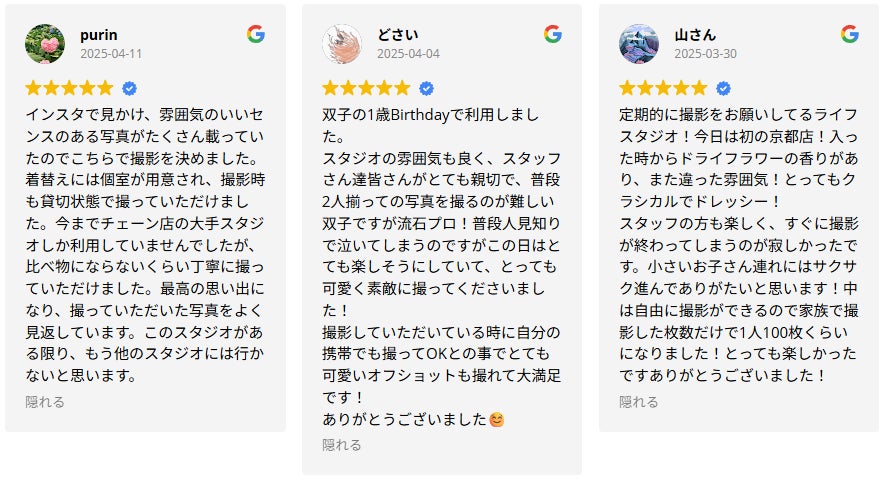 リピーターになられる方も多く、毎年「今年はいつライフスタジオにいく?」とライフイベントとして来て下さるご家族もいます。