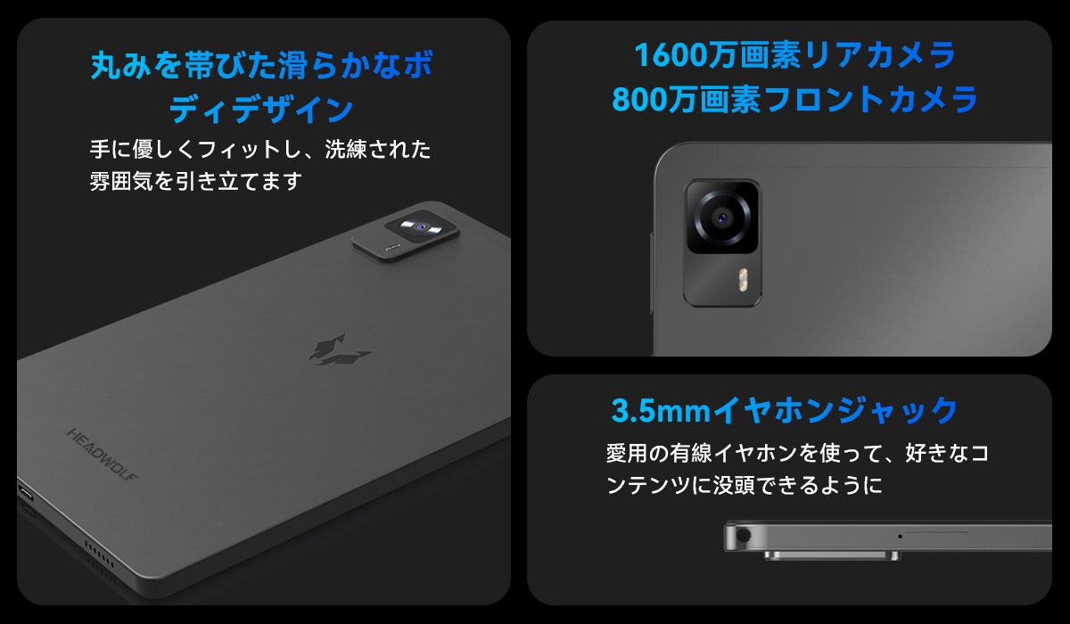 Headwolf FPad6は、2560x1600解像度を誇る8.4inchディスプレイを搭載。In-Cell技術とIPS技術を採用し、ピーク時の輝度500ニトでどの角度から見ても鮮明で色鮮やかな画面表示を実現します。薄型ベゼルデザインにより、画面占有率が向上し、より広く没入感のある視覚体験を提供します。