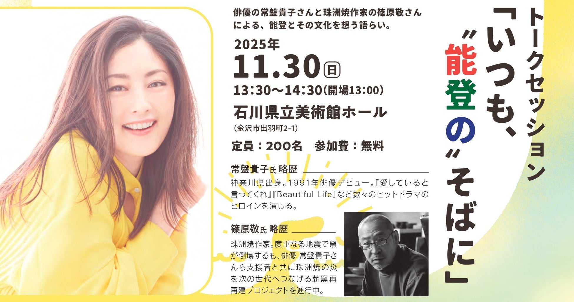 俳優の常盤貴子さんと珠洲焼作家の篠原敬さんに、能登をテーマに語っていただきます。