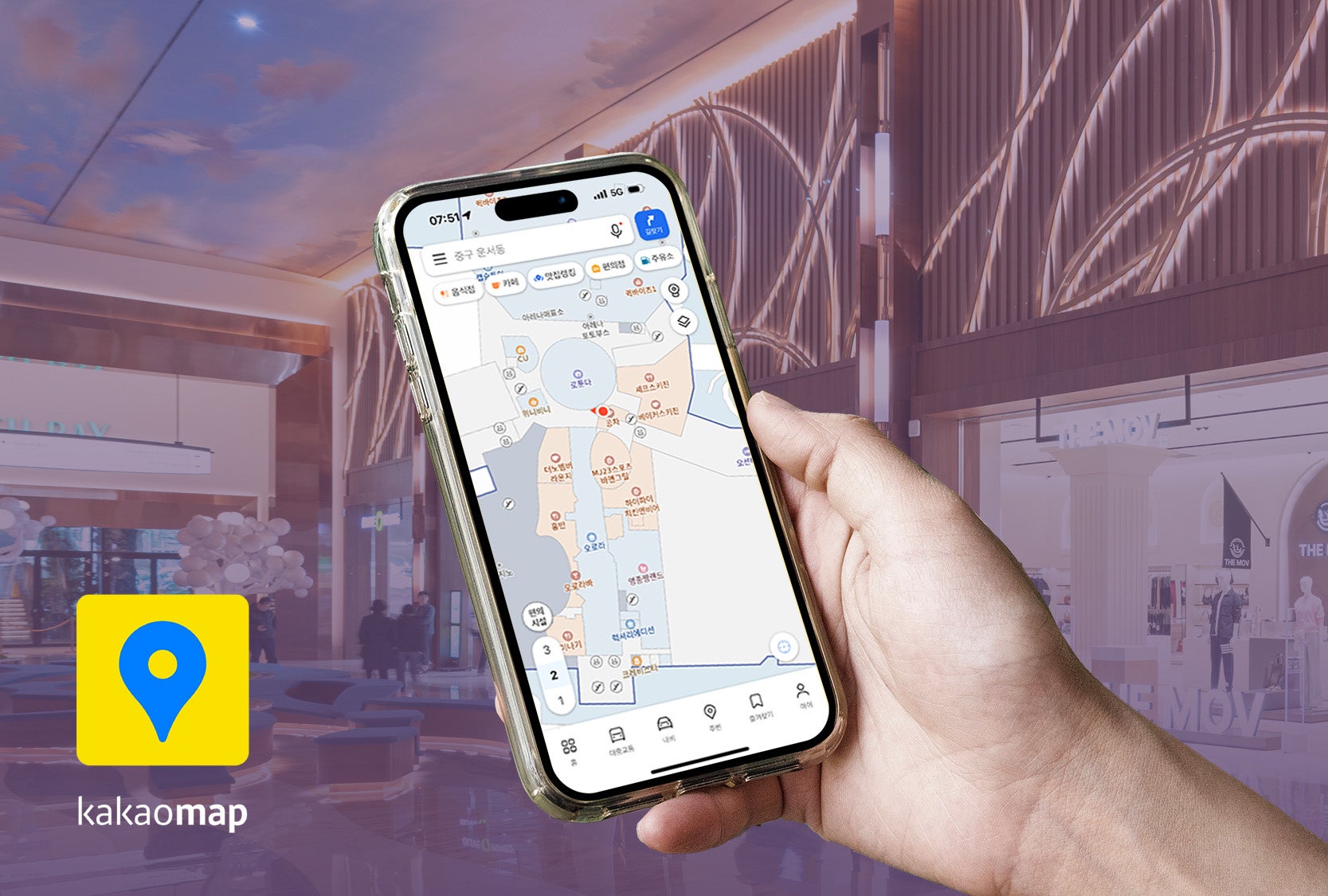 カカオマップの屋内マップサービスは、大型ショッピングモールや空港、駅などの屋内施設の詳細なフロアマップや施設案内を提供しています。今回のサービス導入により、ゲストの皆様はカカオマップを利用して、インスパイア内の主要スポットを簡単に確認することが可能となりました。