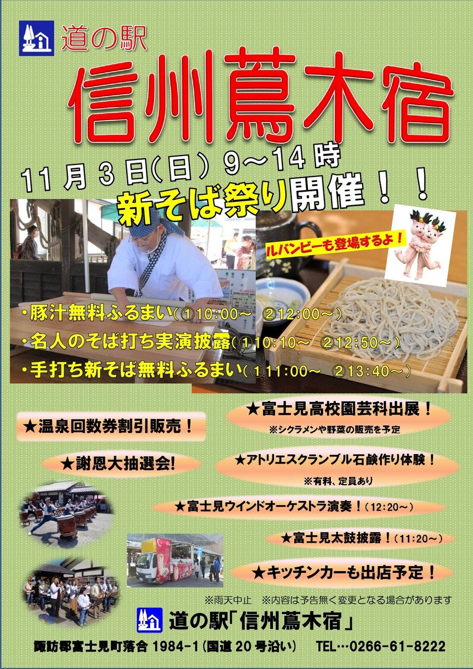 道の駅「信州蔦木宿」最大のイベント、新そば祭りが開催されます。