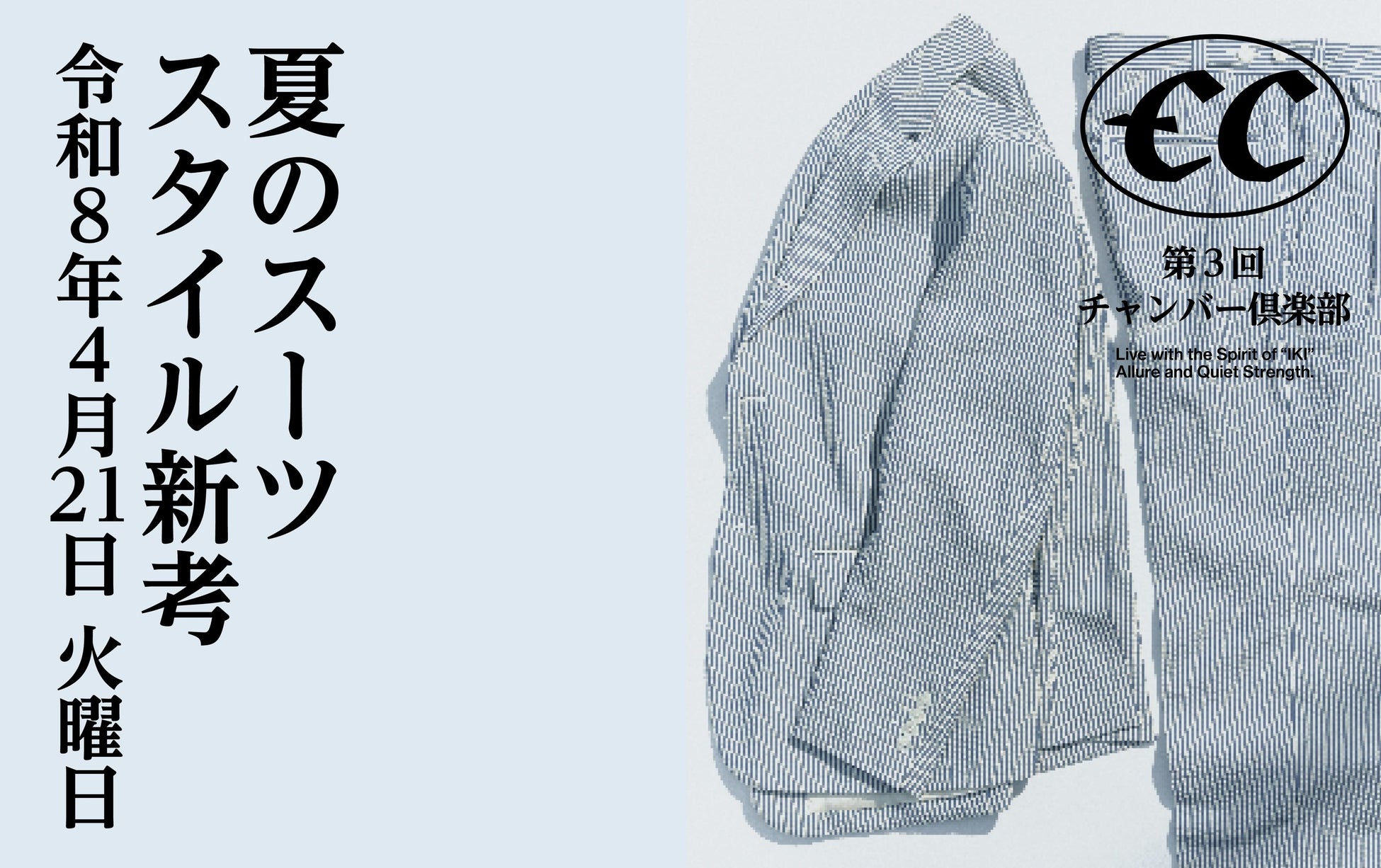 「チャンバー倶楽部 第3回|夏のスーツスタイル新考」日時:4月21日(火)19:00-21:00