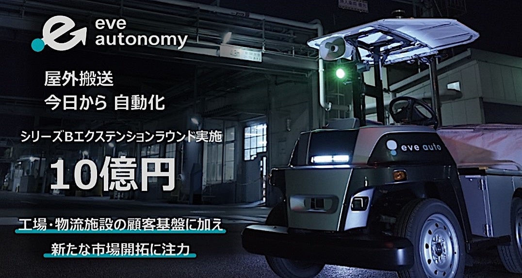 株式会社eve autonomy(イヴ・オートノミー、静岡県磐田市、代表取締役CEO:星野 亮介、以下eve autonomy)は、『屋外搬送、今日から自動化』をテーマに、工場や物流施設を中心に自動運連レベル4の無人搬送ソリューション「eve auto®」を提供および運用してまいりましたが、このたびさらなる事業拡大を目的として、シリーズBのエクステンションラウンドとして10億円の資金調達を行いました。