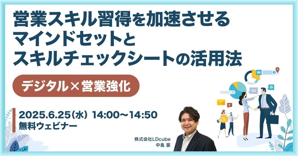 「【デジタル×営業強化】営業スキル習得を加速させるマインドセットとスキルチェックシートの活用法」無料ウェビナーを開催(6月25日14:00~14:50)株式会社LDcube