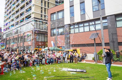 そのほか、協賛企業様の出展ブースや昔なつかしい縁日、各種キッチンカーやシャボン玉ショーなど、りすのこスクエアをのんびりお散歩するだけでもお楽しみいただけるイベントとなっています。