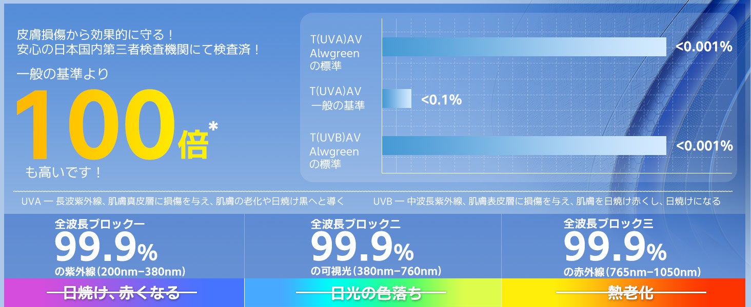 Alwgreenが新たにリリースした日傘は、その優れた機能で再び業界をリードします。この日傘はJISの専門認証を取得しており、100%の紫外線および光の遮断効果を保証し、UV0の高基準を実現します。肌の老化やシミの防止には、この日傘が最適です。