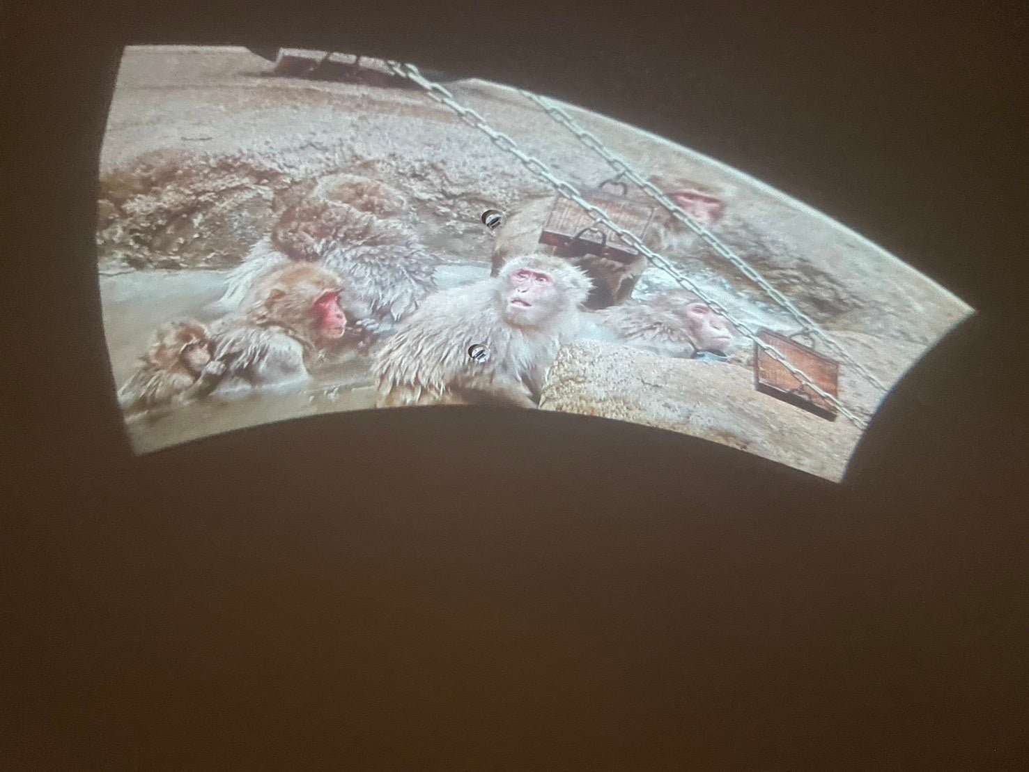 ヴィヒタの香りに包まれた岩盤浴室内で、天井に福岡市動物園の飼育員さんが撮影した動物達の秘蔵映像が流れます。