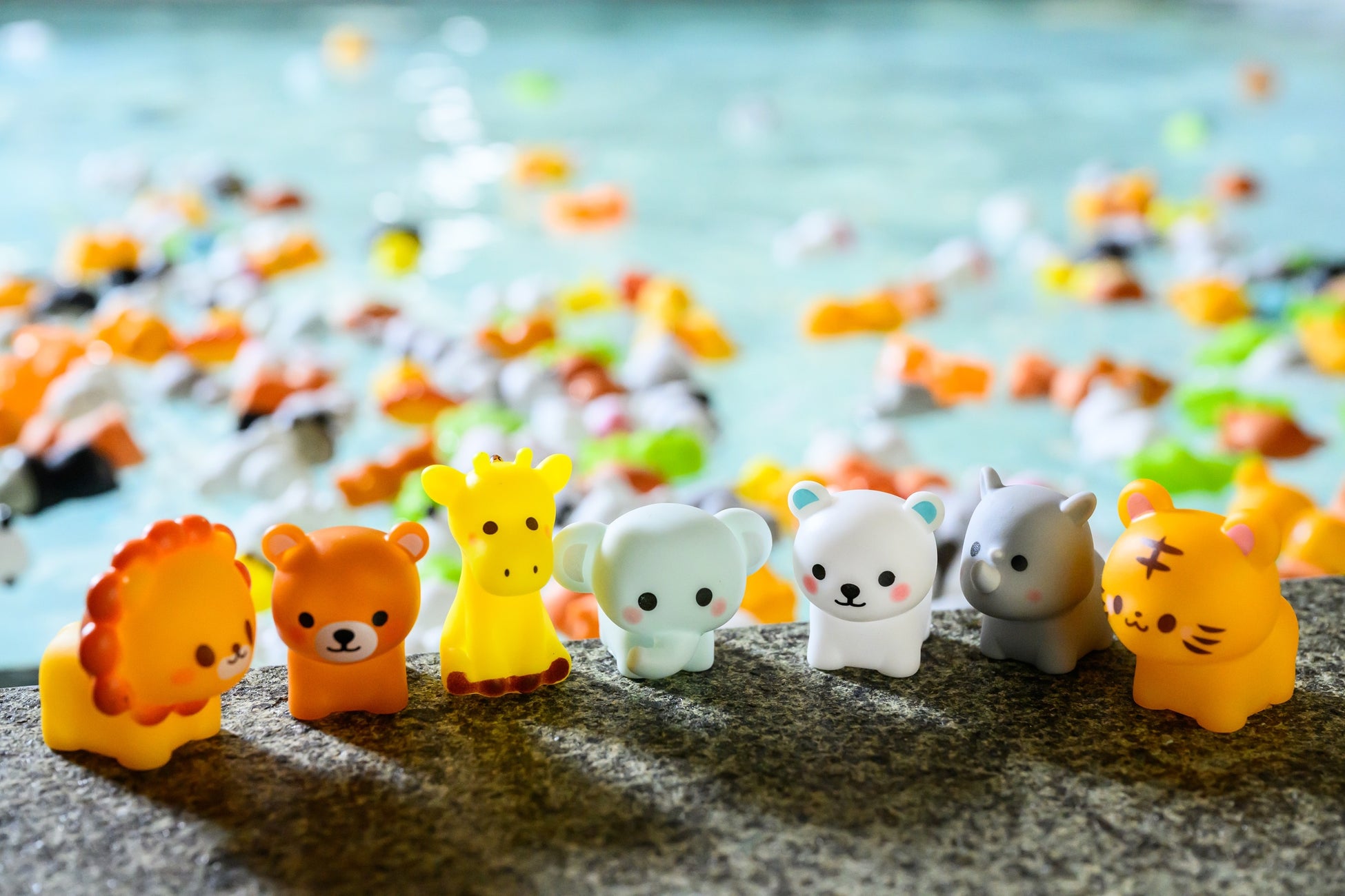 動物のおもちゃをお風呂に浮かべた「動物園風呂」を開催。