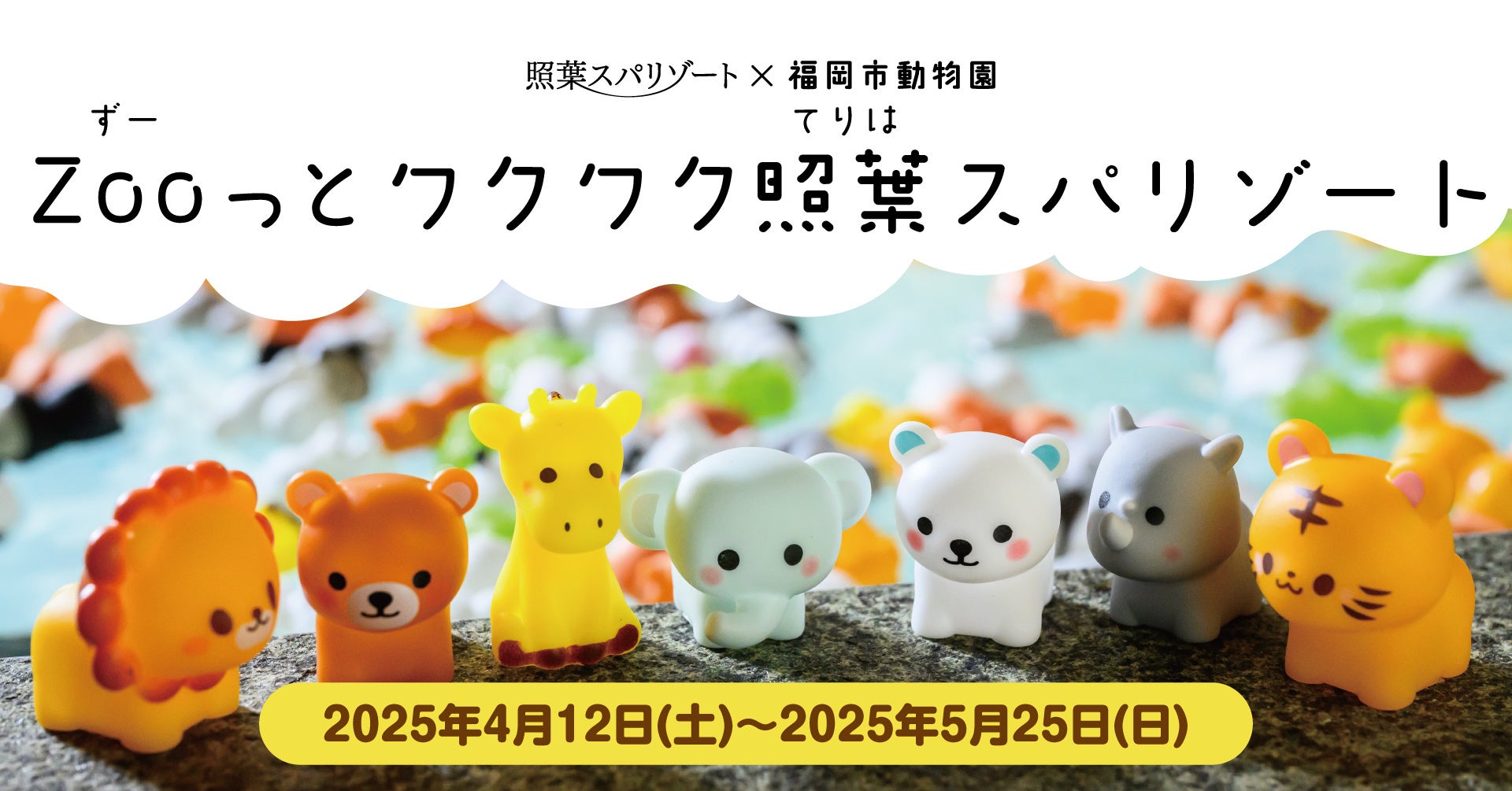 福岡を代表する温浴複合施設、「照葉スパリゾート本店」(福岡市)及び「照葉スパリゾート門司店」(北九州市)は、令和7年4月12日(土)から5月25日(日)まで、福岡市動物園(福岡市)とのコラボ企画として、「Zoo(ずー)っとワクワク照葉スパリゾート」を開催することとなりました。このイベントでは、様々な動物たちの魅力を紹介し、楽しみながら動物たちを身近に感じていただき、動物園支援を目的としたオリジナルコラボタオルの販売も行います。タオル売上やコラボメニューの売上の一部は動物園の運営維持や動物たちの支援に役立てられ、地域資源の保全と地域活性化につながる取り組みです。