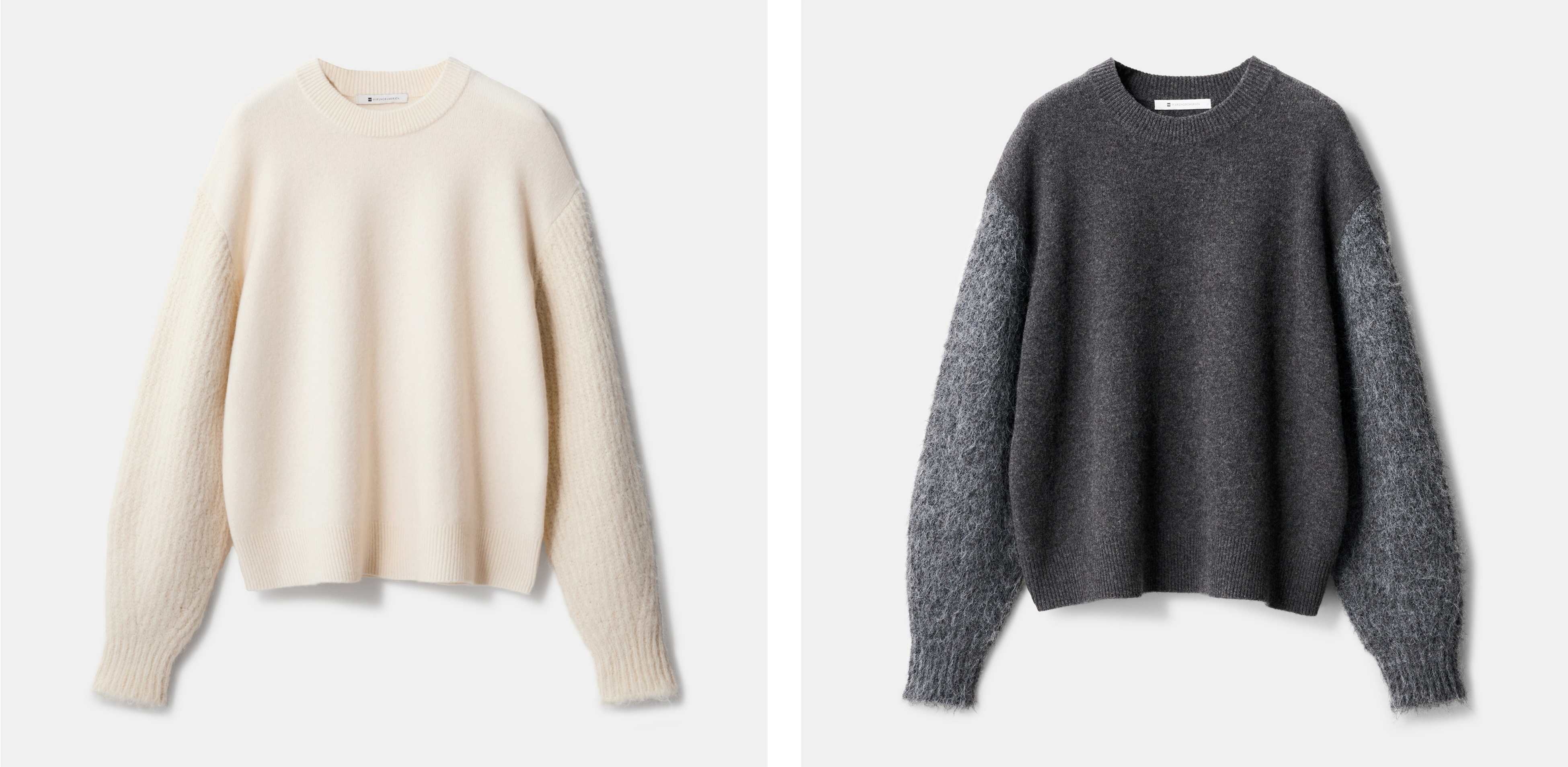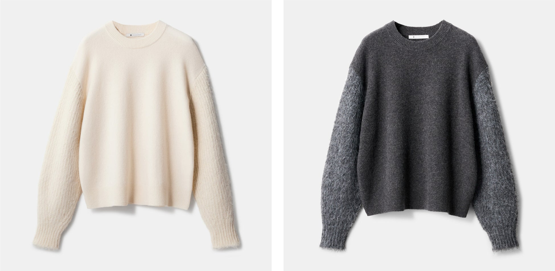 ■異素材を組み合わせたデザインが上品な、ブラッシュドスリーブセーター