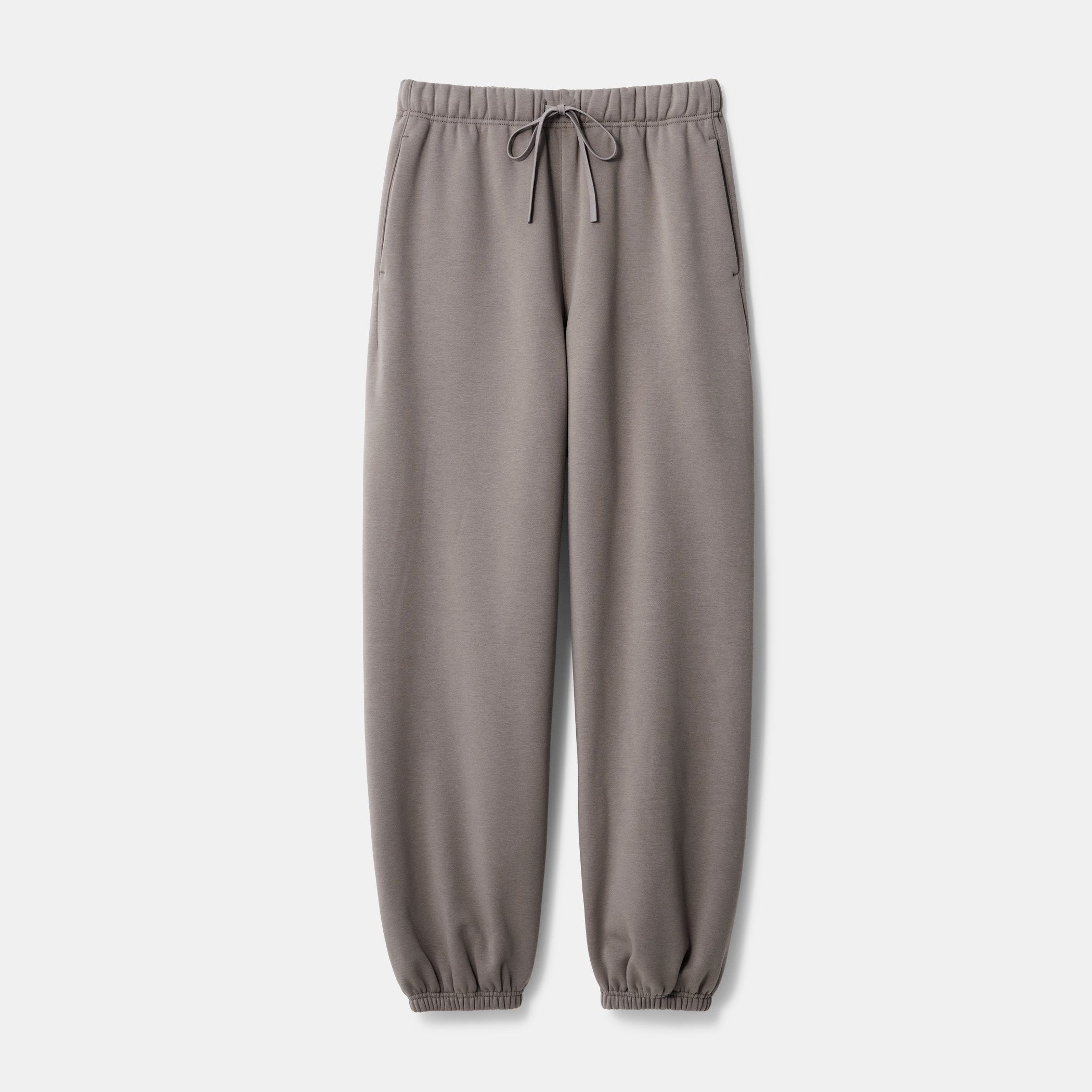 イージーパンツはウエストをドロスト仕様にすることで快適な着心地に仕上げました。太もも周りから裾にかけてふわりとしたボリューム感があり、セットアップで着れば、“大人のリラックスウェア”としても楽しめます。