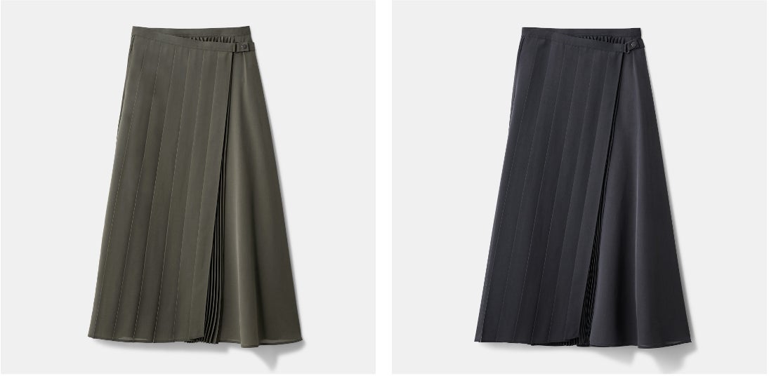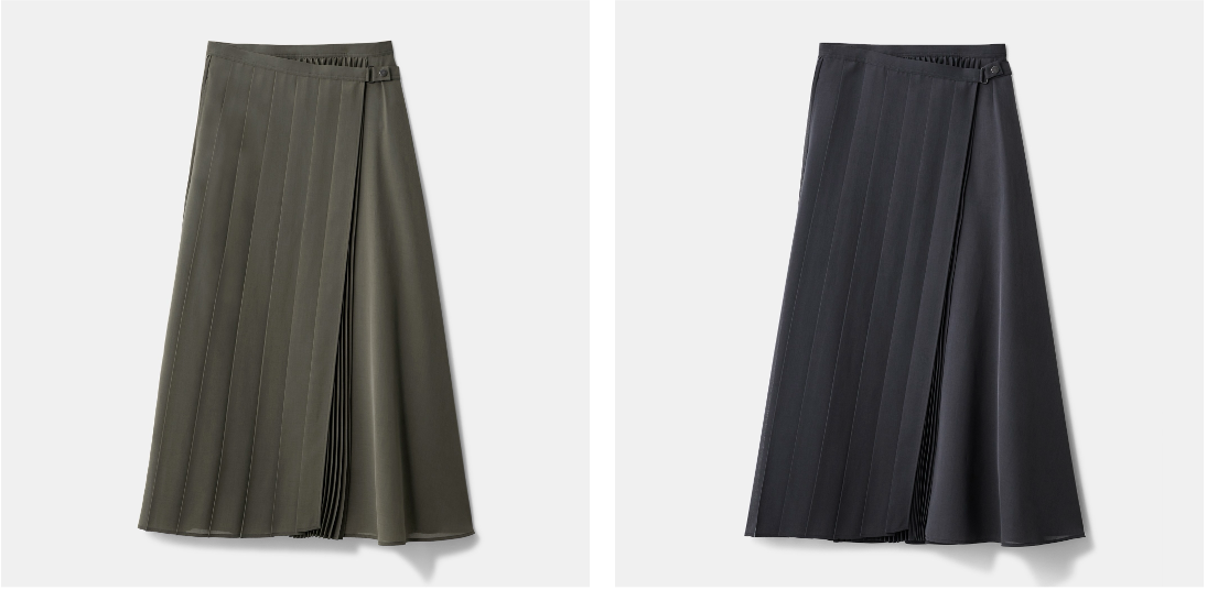 ■コーディネートに軽快さを添える、シアープリーツラップスカート