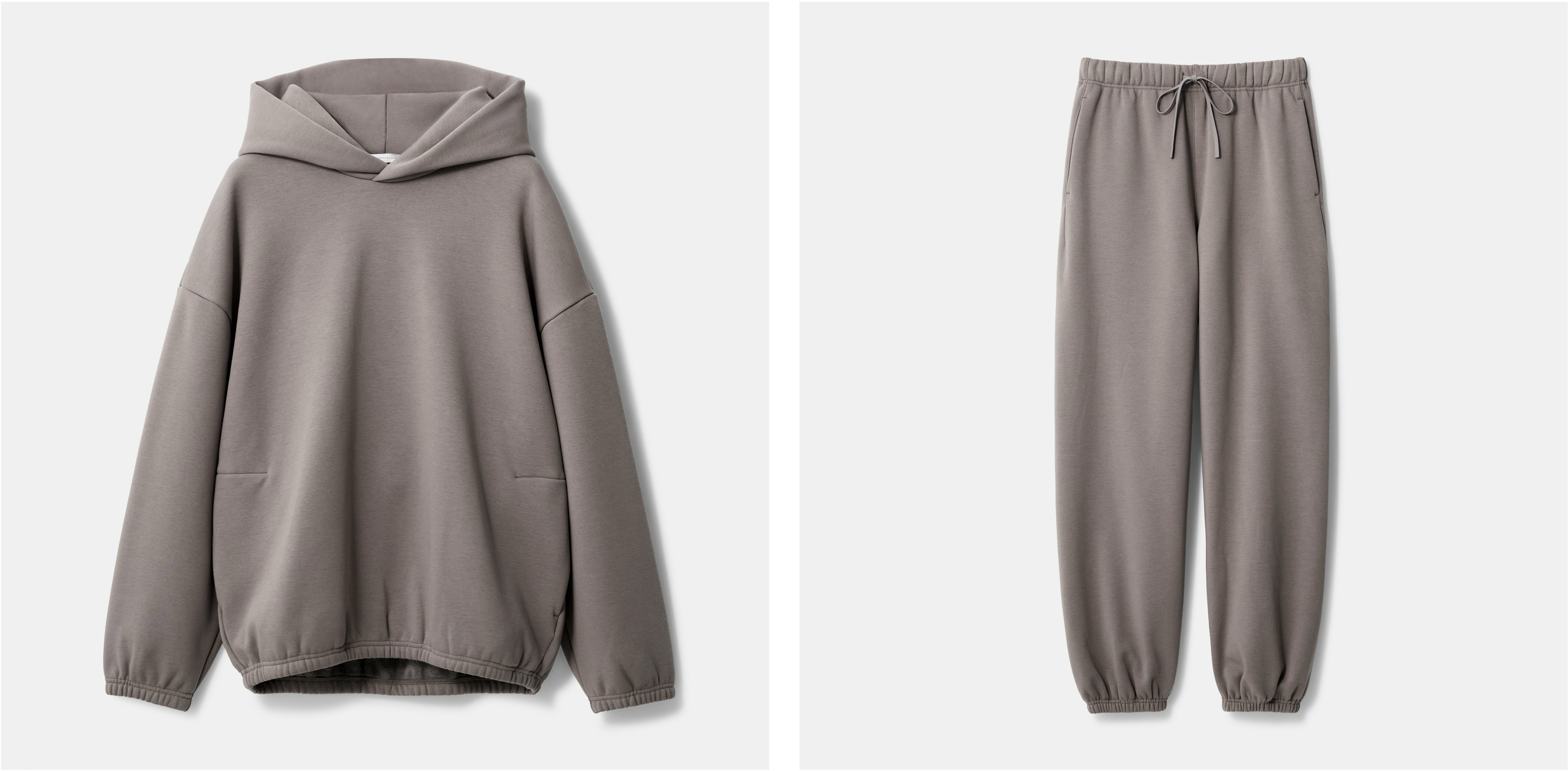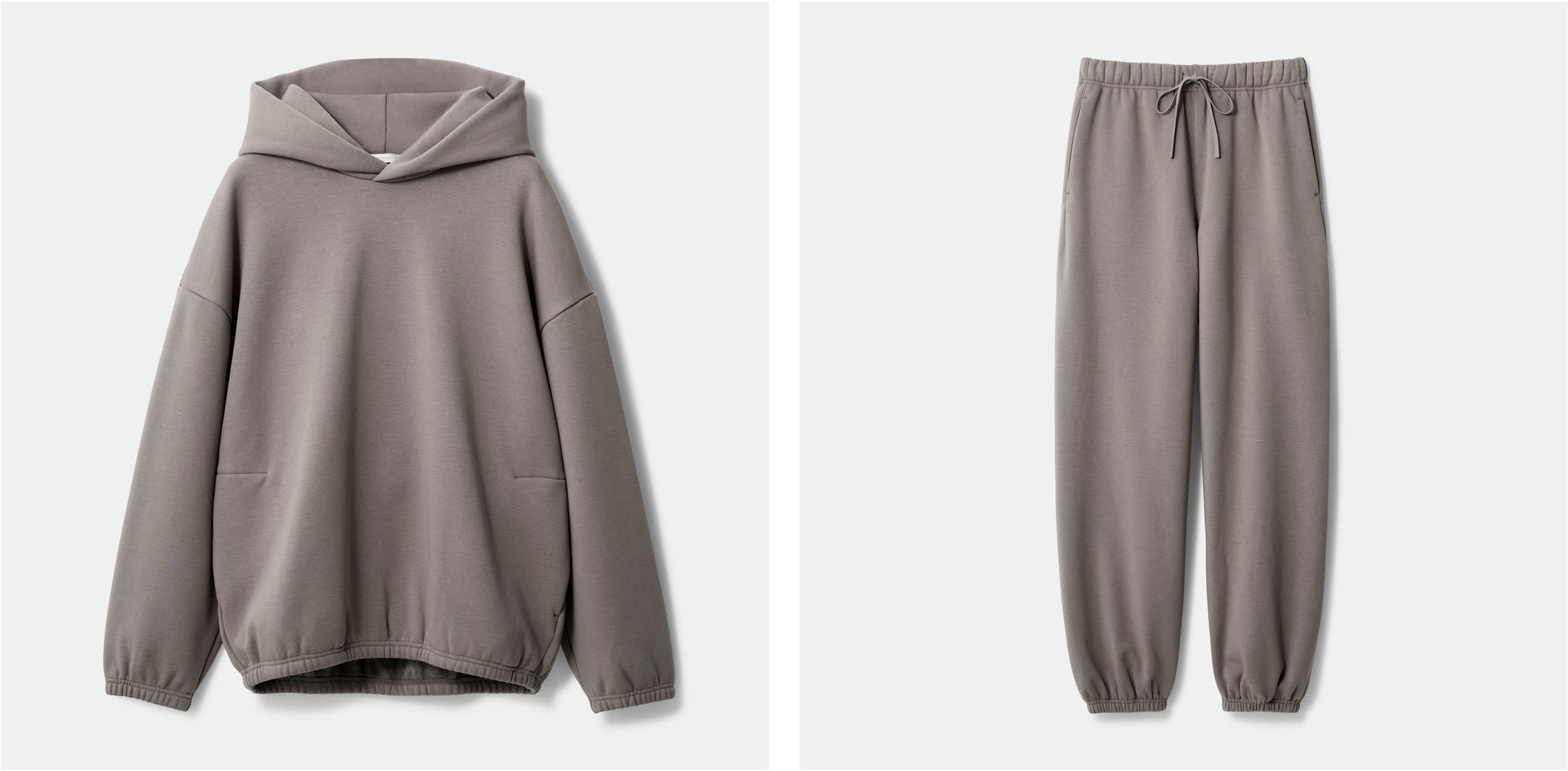 滑らかな質感と裏ボアのコントラストで、“自分のための上質さ”を楽しめるバックフリースオーバーサイズパーカ&イージーパンツ。