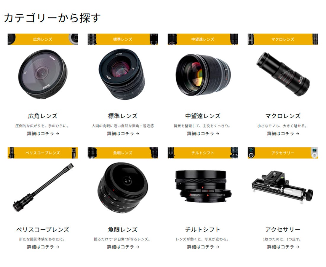 新発売や人気商品だけでなく、「カテゴリーから探す」「マウントから探す」などの新たなナビゲーションを導入し、「掘り出し物」や「気になる一品」との出会いを、より楽しんでいただける構成に変更しました。