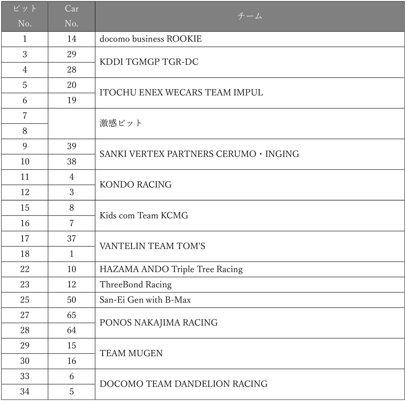 2025 SUPER FORMULA 第2 回公式テスト ピット割り
