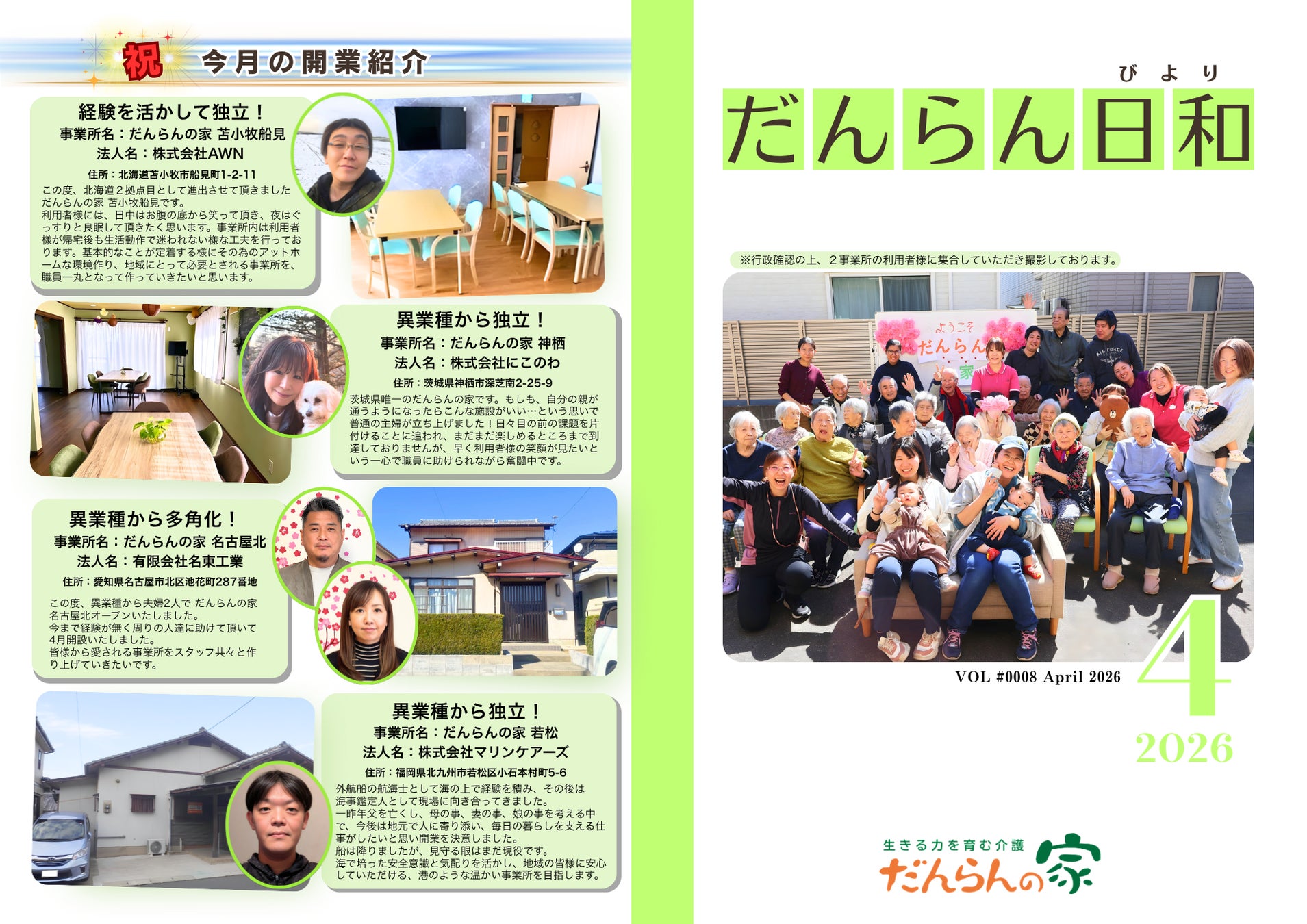 全国に広がる「だんらんの家」の魅力を届けるために──日本介護事業株式会社がフランチャイズ本部として発行する月刊広報誌『だんらん日和』4月号を公開