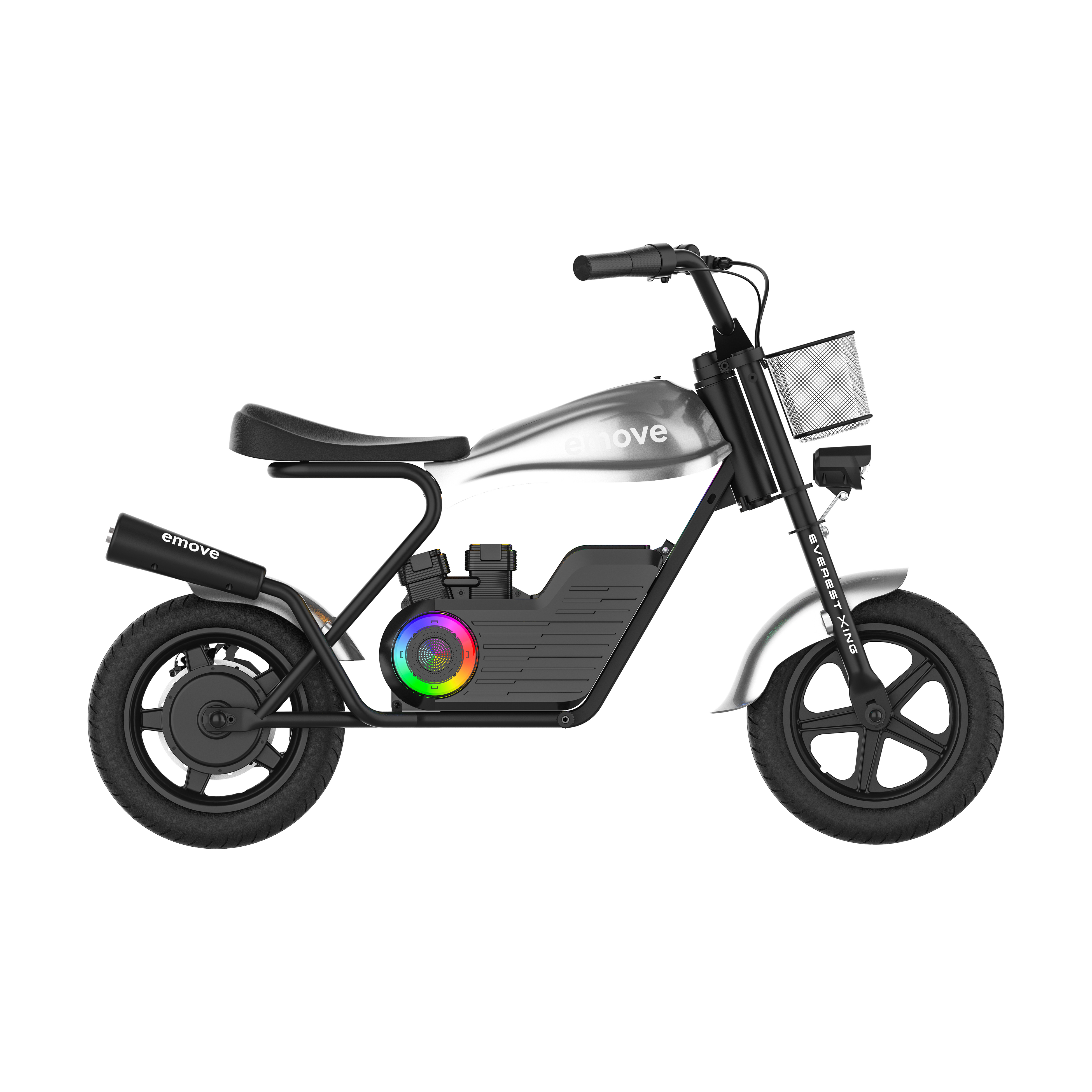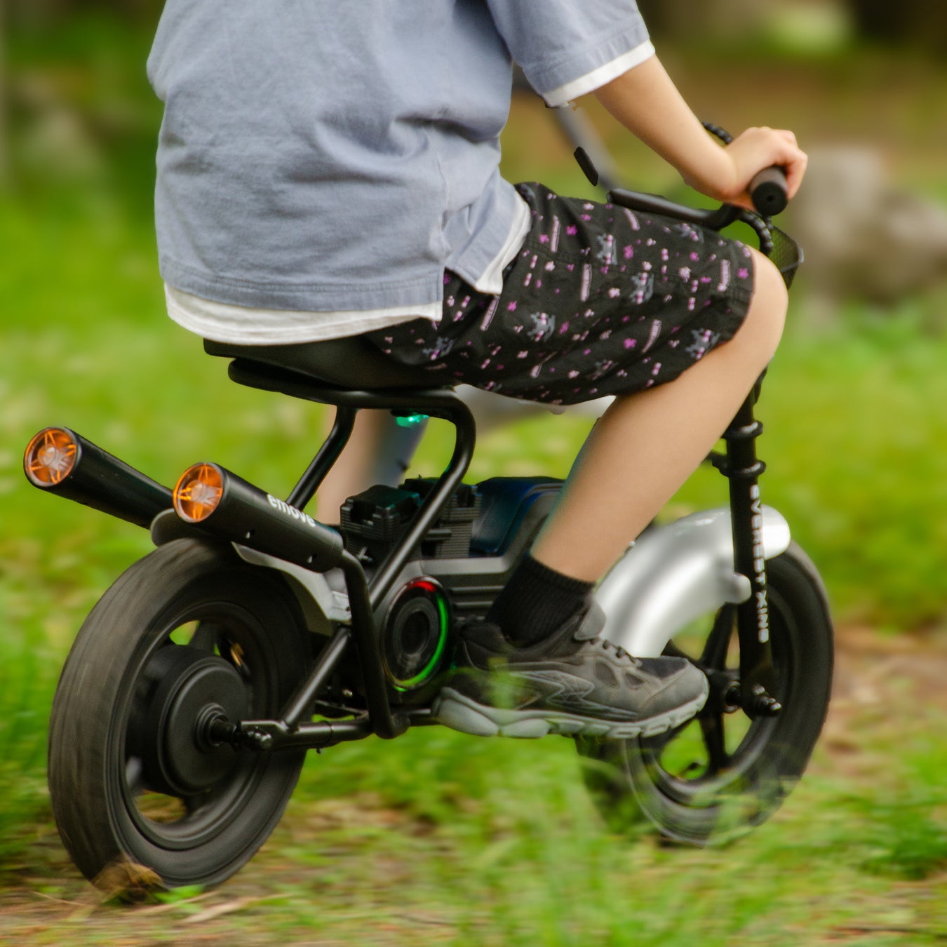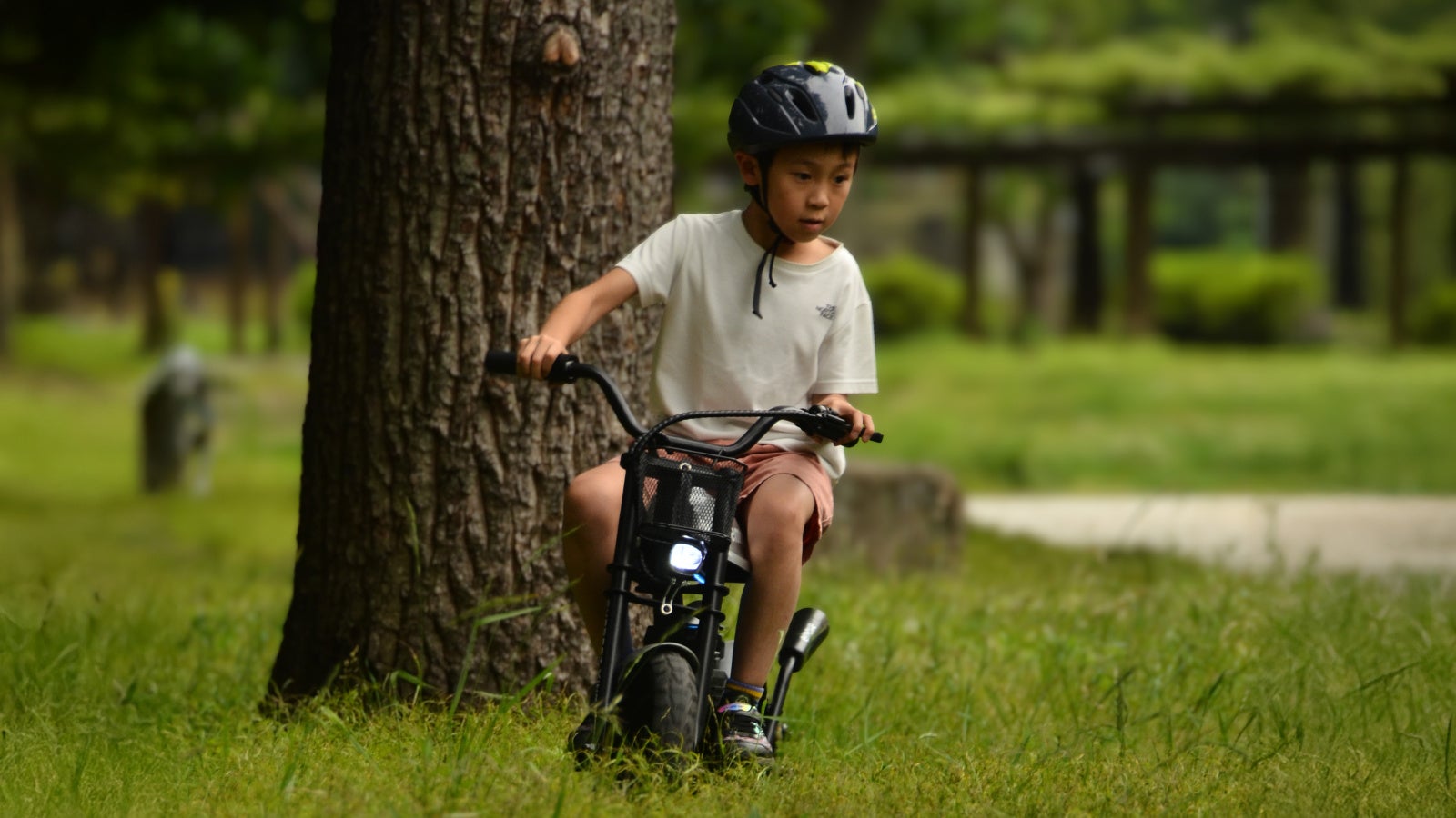 emoveはスロットルを回して進むフル電動バイクです。耐荷重80kgの本格設計で子供から大人まで楽しむことができます。親子で競争したり、遊びながら自然とコミュニケーションが生まれる、家族でちょっとした冒険を共有できる、emoveは新しいアクティビテイを提供します。