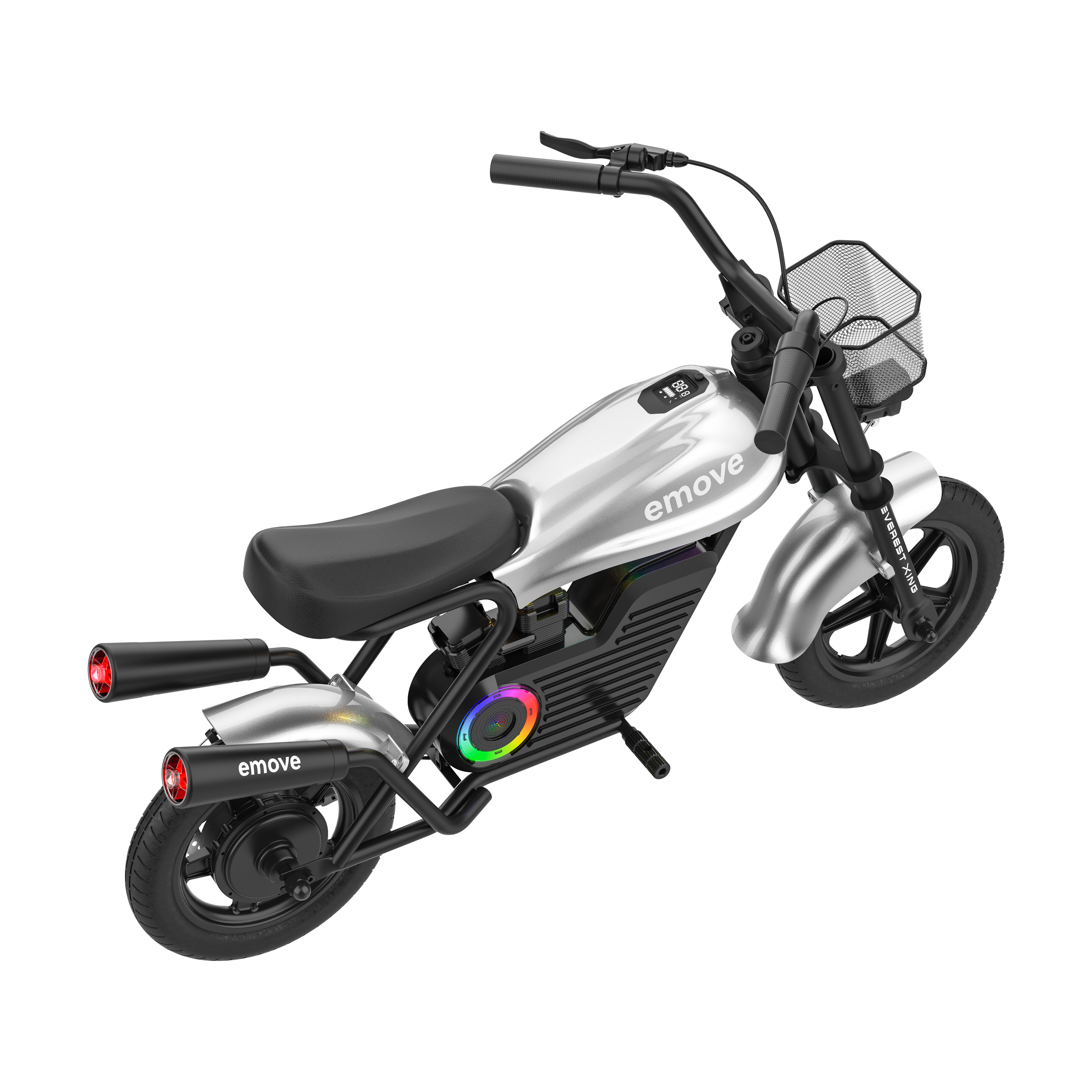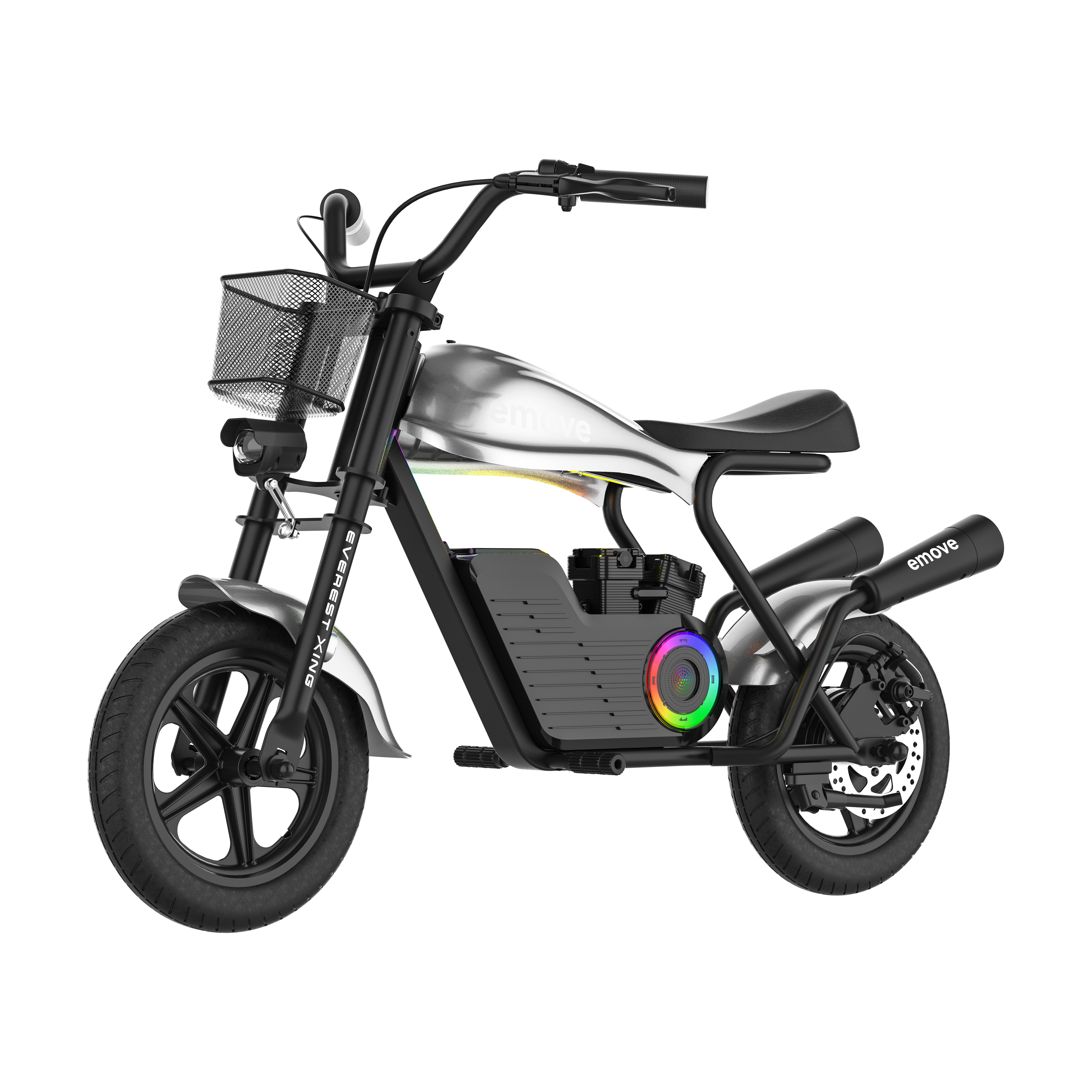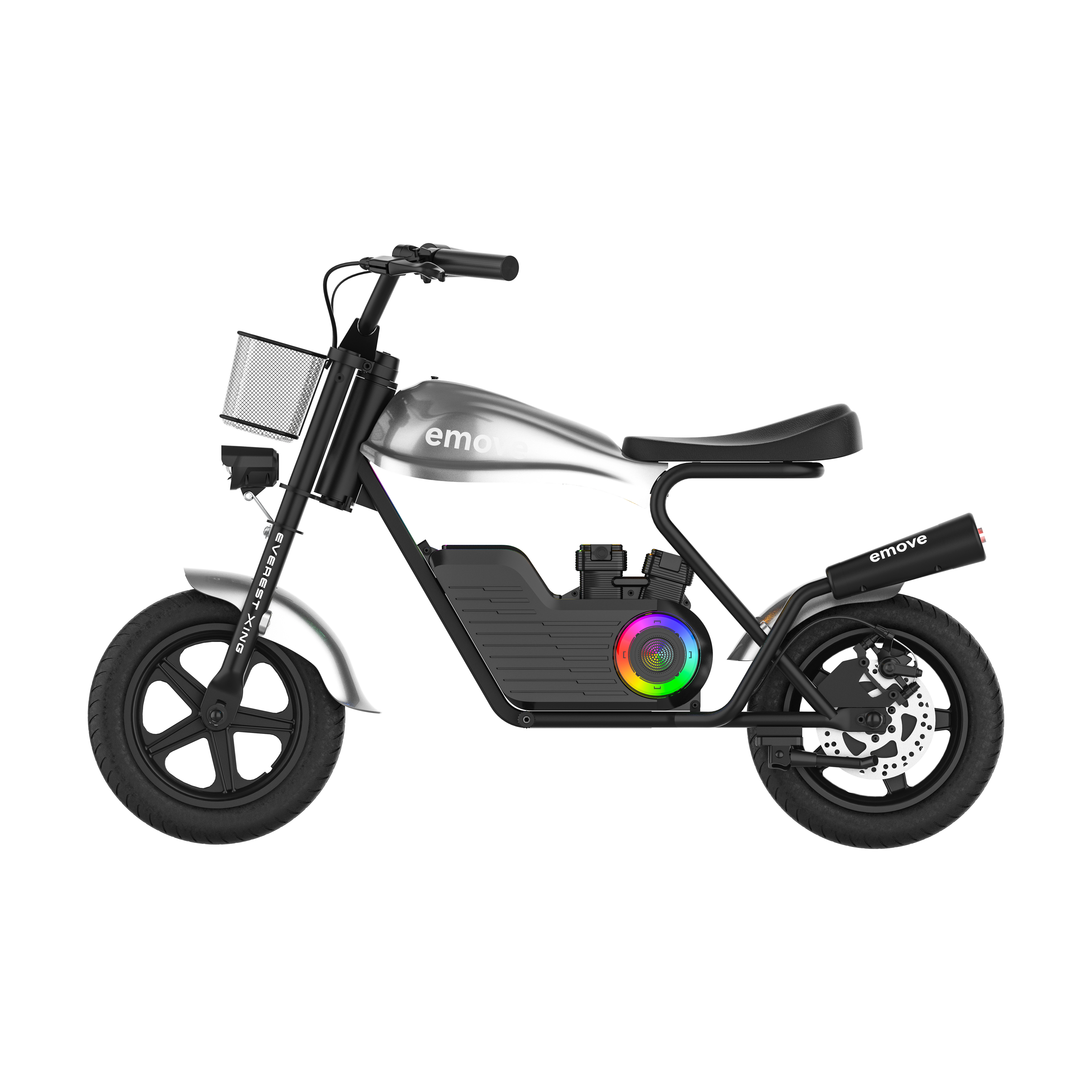 emoveはスロットルを回して進むフル電動バイクです。耐荷重80kgの本格設計で子供から大人まで楽しむことができます。親子で競争したり、遊びながら自然とコミュニケーションが生まれる、家族でちょっとした冒険を共有できる、emoveは新しいアクティビテイを提供します。