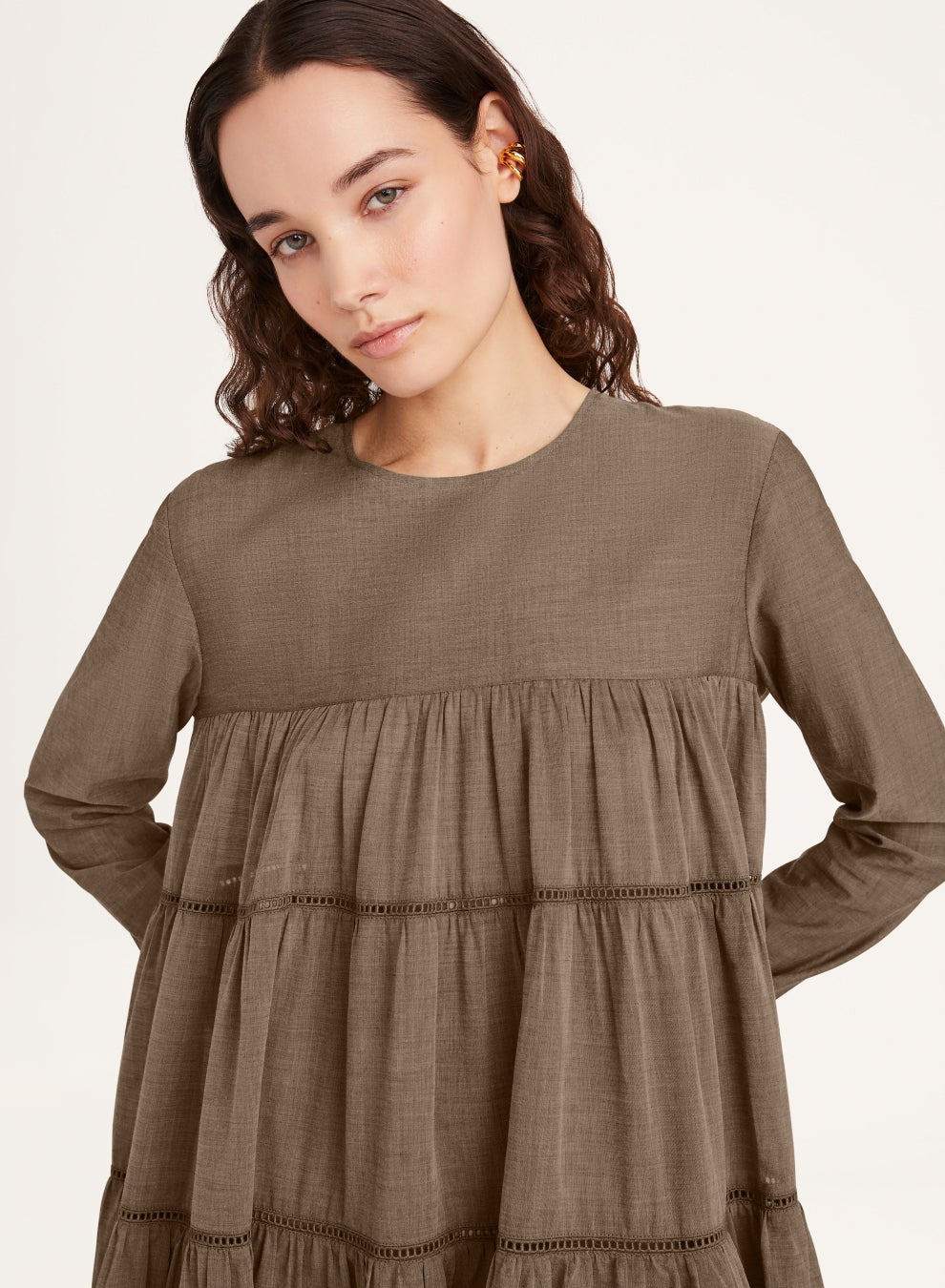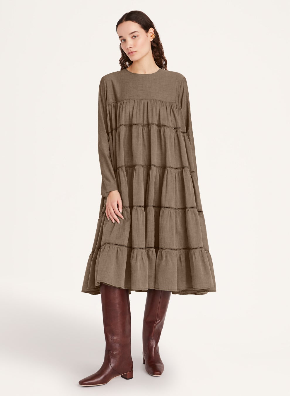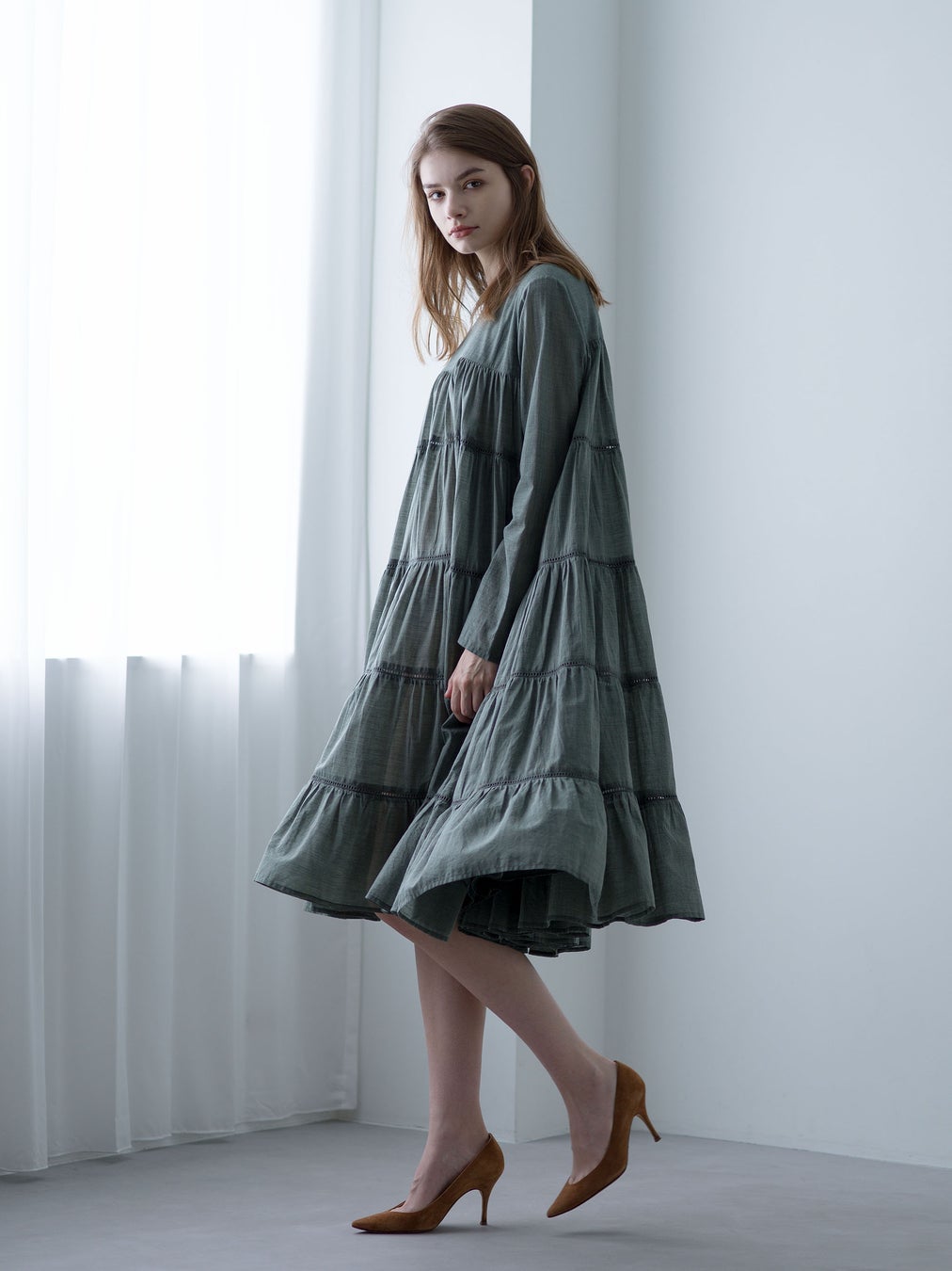 もっとマーレットのドレスをデイリーに着られるように、ESSAOUIRAとMAIDAの中間レングスのドレスが欲しいというご希望にお応えして誕生したのが「MAIDA MIDI」です。ティアードの可憐さはそのままに、より上品な雰囲気を併せ持つドレスに仕上げました。様々な身長の方がお好みの長さのティアードドレスを着られるように、24FWから5段階のバリエーションが揃います。お客様の声を大切にするデザイナーMarinaならではのお取組みが実現いたしました。