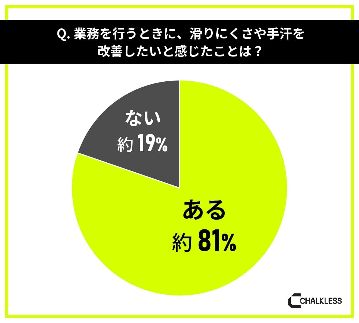 滑りにくさや手汗を改善したいと感じたことがあると回答した人は約81%でした。