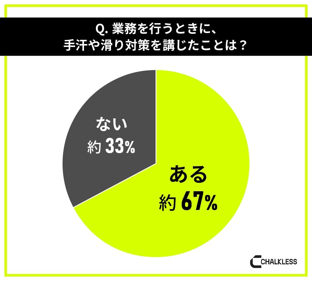続いて、「業務を行うときに、滑りにくさや手汗を改善したいと感じることはありますか?」と質問しました。