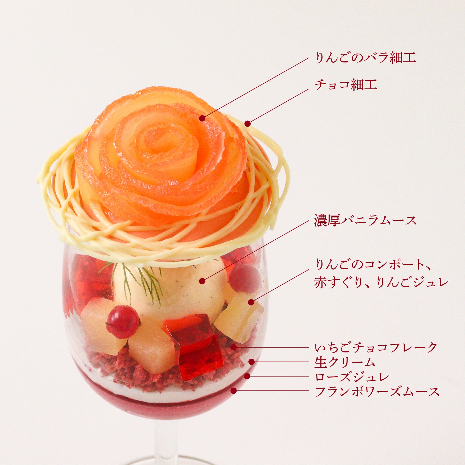 トップには、一つひとつ丁寧に手作りしたりんごのバラ細工をあしらい、可憐な彩りを添えています。