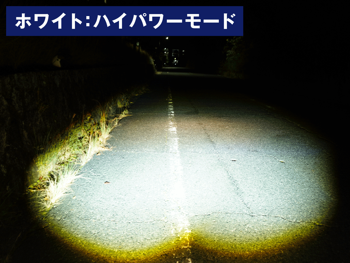 ホワイトとイエローの2色切り替えに加え、明るさをハイパワー(25W)とエコモード(10W)の2段階で調整可能。