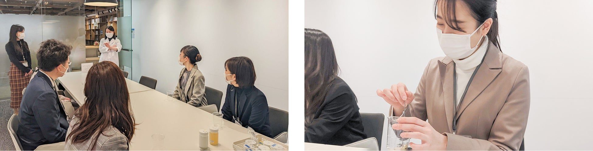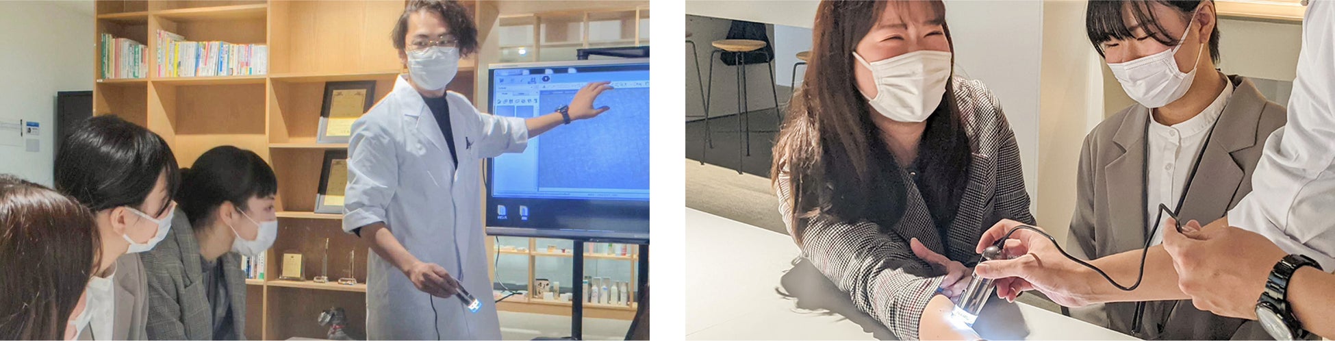 化粧品および原料が持つ肌への有効性を数値や画像で可視化する評価試験に触れ、事業内容への理解を深めました。