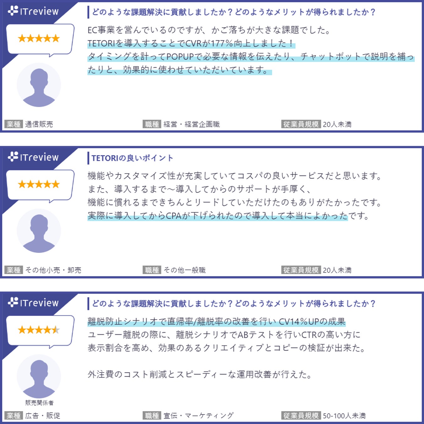 「ITreview」に寄せられたTETORI利用者のレビュー(一部抜粋)