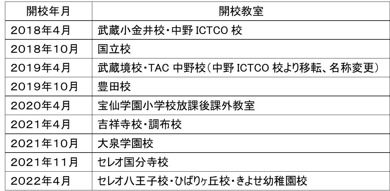 フランチャイズ運営を開始してから5年目となる当社は、2018年にJR中央線沿線の2校でプログラボ事業をスタートしました。現在では京王線や西武池袋線の沿線を含む西東京エリアに12校(校内教室を除く)を展開し、2022年5月に在籍生徒数1,000名を突破しました。このほか、近隣の私立小学校や私立幼稚園でも正課や放課後の習い事として授業を提供しており、より多くのお子さまにロボットプログラミングに触れていただく機会を創出しています。