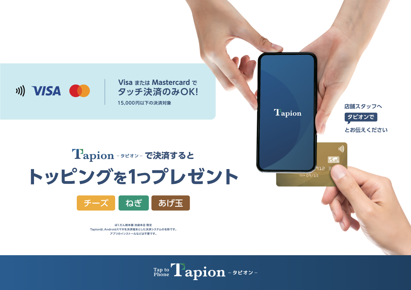 Android携帯のタッチ決済「Tapion」がばくだん焼本舗池袋本店にてパイロット運用中
