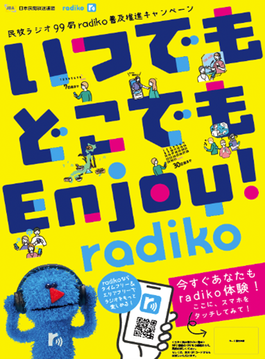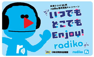一般社団法人日本民間放送連盟(民放連)ラジオ委員会(委員長:檜原麻希・ニッポン放送代表取締役社長)と株式会社radiko(池田卓生・代表取締役社長)は共同で、radiko普及推進キャンペーン「いつでもどこでもEnjoy! radiko」を2月24日から実施します。
