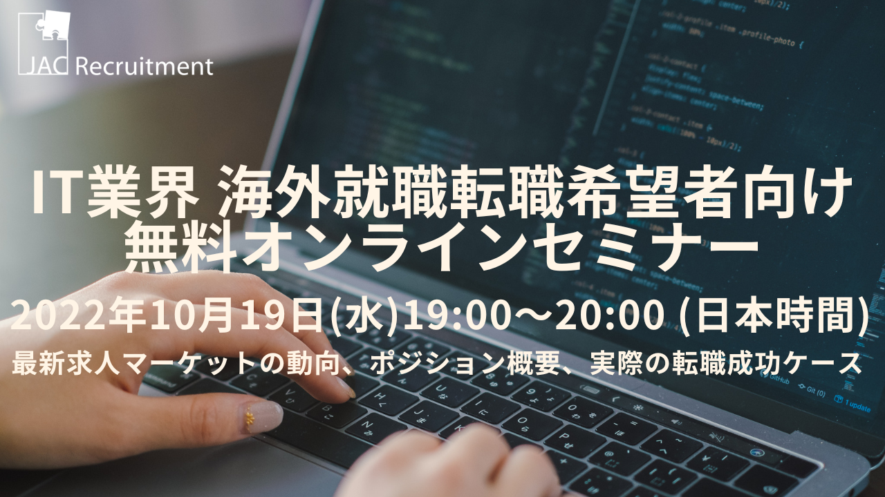 【10/19(水)開催】IT業界の海外就職、転職希望者向け無料オンラインセミナー